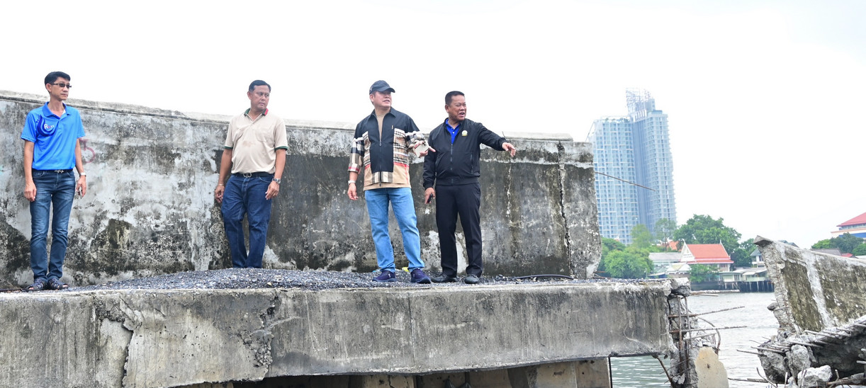ร้อยเอก ธรรมนัส ลุยติดตามการซ่อมแซมพนังคอนกรีตป้องกันตลิ่งริมแม่น้ำเจ้าพระยาชำรุด เผย กรมชลประทานจัดเตรียมเครื่องจักรเครื่องพร้อมเข้าดำเนินการทันที หลังขอความอนุเคราะห์เจ้าของที่ดินเอกชนแล้วเสร็จ พร้อมติดตามการปรับปรุงพนังกั้นน้ำริมคลองปทุมฯ
