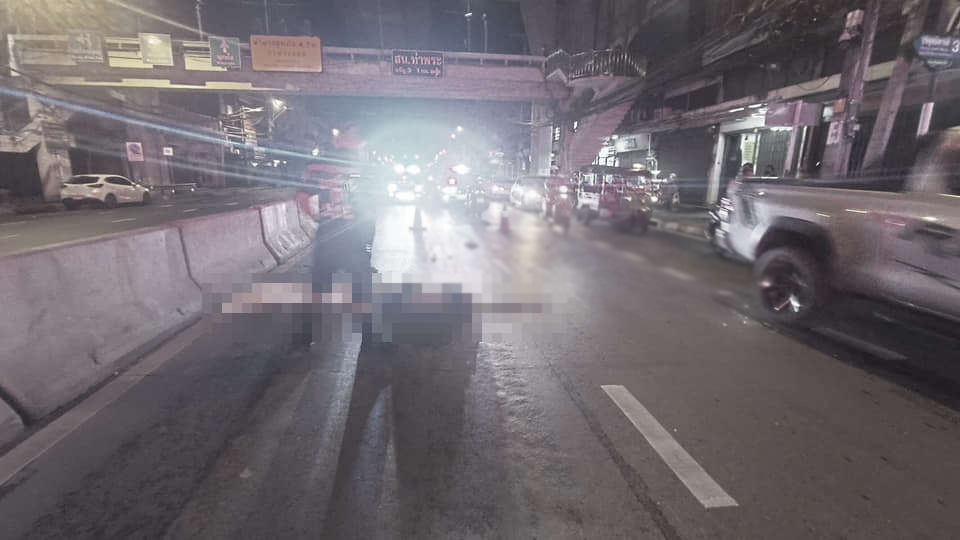 ชายตกจากสะพานลอย กระแทกรถจักรยานยนต์คว่ำ กระบะตามหลังทับซ้ำ เสียชีวิตกลางถนน หน้าปากซอยจรัญสนิทวงศ์ 3