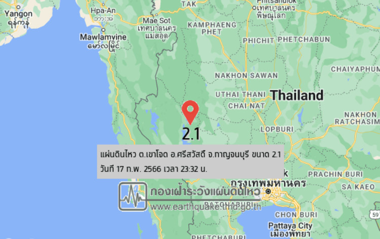 แผ่นดินไหว ขนาด 2.1 ที่จังหวัดกาญจนบุรี