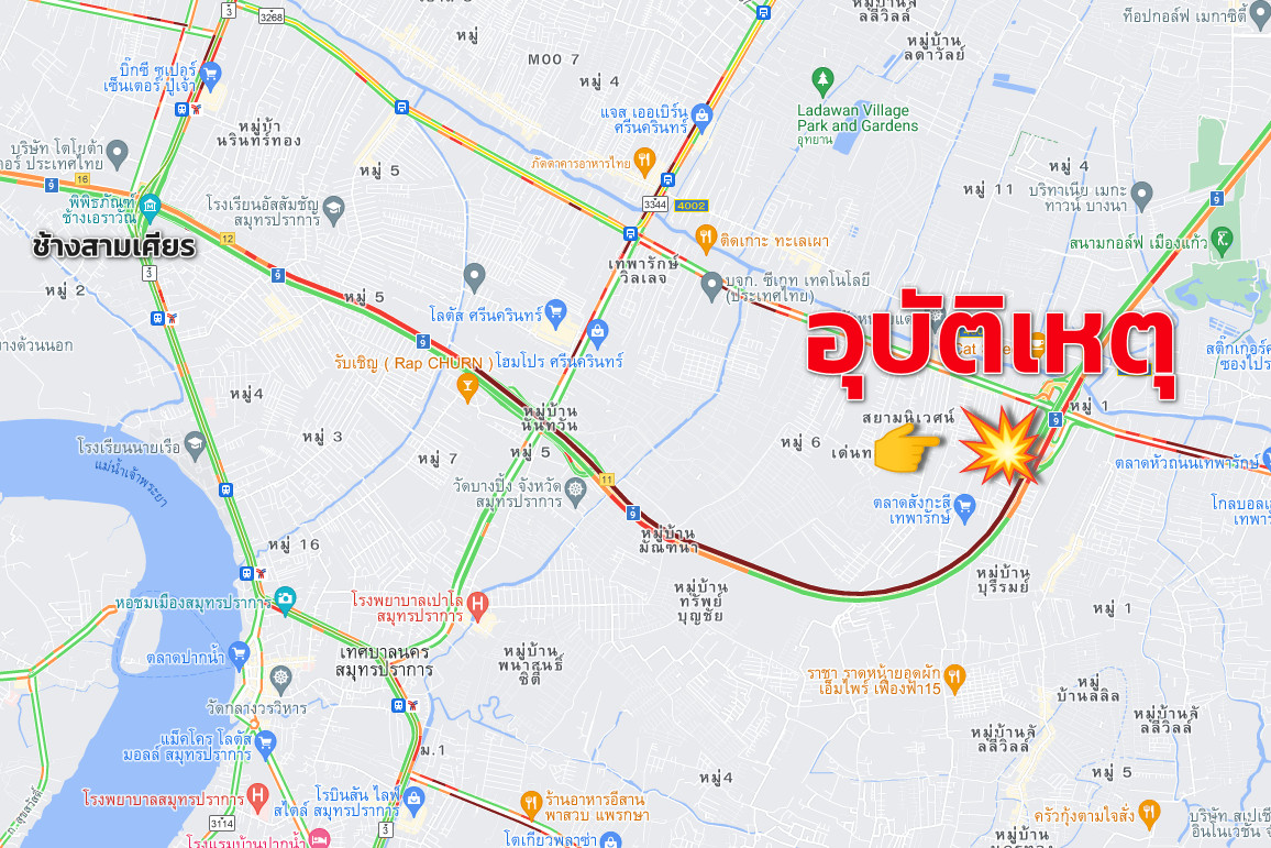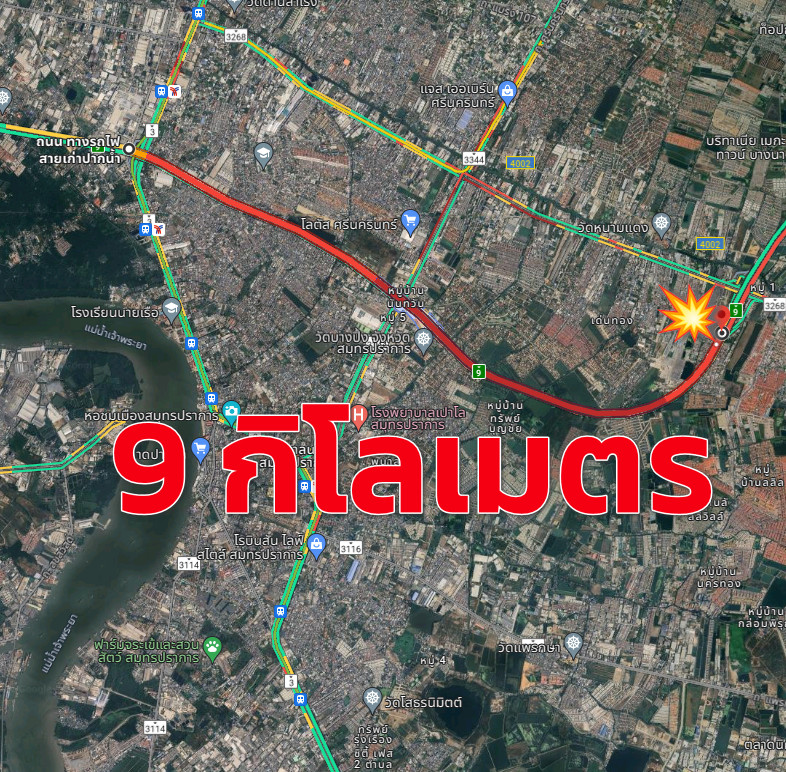 24 พ.ค.2567 เมื่อเวลา (18.19 น.) ทางพิเศษด่วนกาญจนา(บางพลี-สุขสวัสดิ์) ทิศทางจากพระราม 2 ไปบางพลี รถติดขัดมาก เนื่องจาก บริเวณก่อนลงเทพารักษ์ เกิดอุบัติเหตุ เทรลเลอร์ 22 ล้อ ปีนแบริเออร์ ขวางจราจร 1 เลนซ้าย การเคลื่อนย้ายได้ประสานรถเครนมาดำเนินการ แจ้งผู้ใช้ทางหลีกเลี่ยง