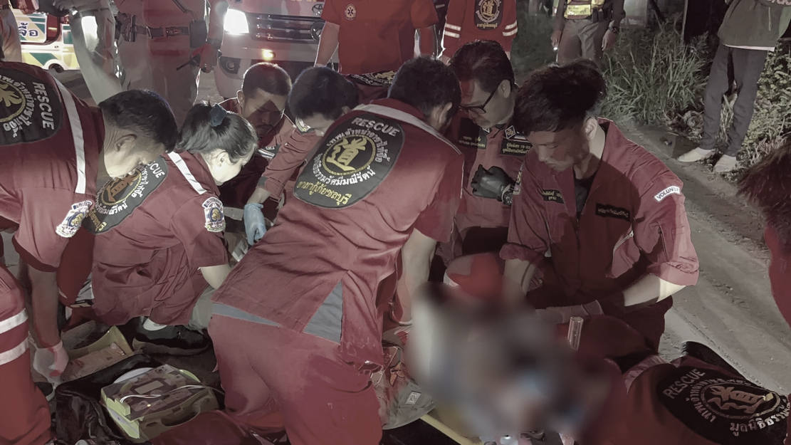 ที่เกิดเหตุ พบ ด.ต.ธนากรณ์ ผู้บังคับหมู่งานจราจร สภ.ดอนหัวฬ่อ นอนหมดสติ อาการสาหัส ชีพจรเต้นอ่อนมาก เจ้าหน้าที่กู้ภัยจึงเร่งปฐมพยาบาลเบื้องต้นและปั๊มหัวใจ ก่อนจะประสานรถกู้ชีพโรงพยาบาลชลบุรีมารับตัว