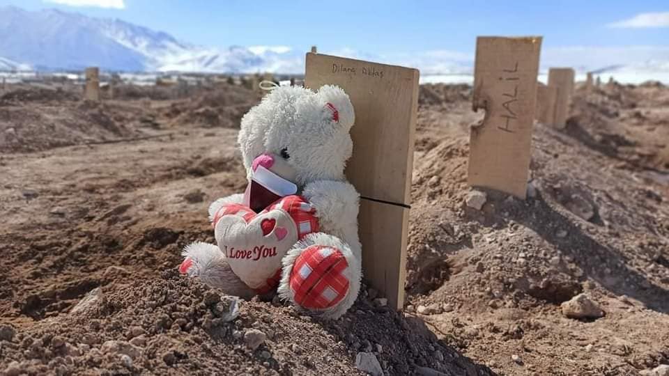 ในขณะที่ โลกออนไลน์ มีการแชร์ภาพและเรื่องราว ที่ชวนให้เศร้าสลด นั่นคือภาพของสุสานเมือง Malatya ภูมิภาค อานาโตเลีย เจ้าหน้าที่ต้องใช้หมายเลข แทนชื่อผู้เสียชีวิตบนสุสาน เพราะร่างทั้งหมดนั้นไม่ทราบชื่อ ว่าเป็นใคร รวมถึงนำเอาชุดที่ผู้เสียชีวิตสวมใส่ สิ่งของ ตุ๊กตา รองเท้า หรือสิ่งของอื่นๆ มาวางไว้ด้านบน