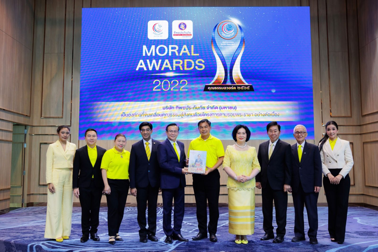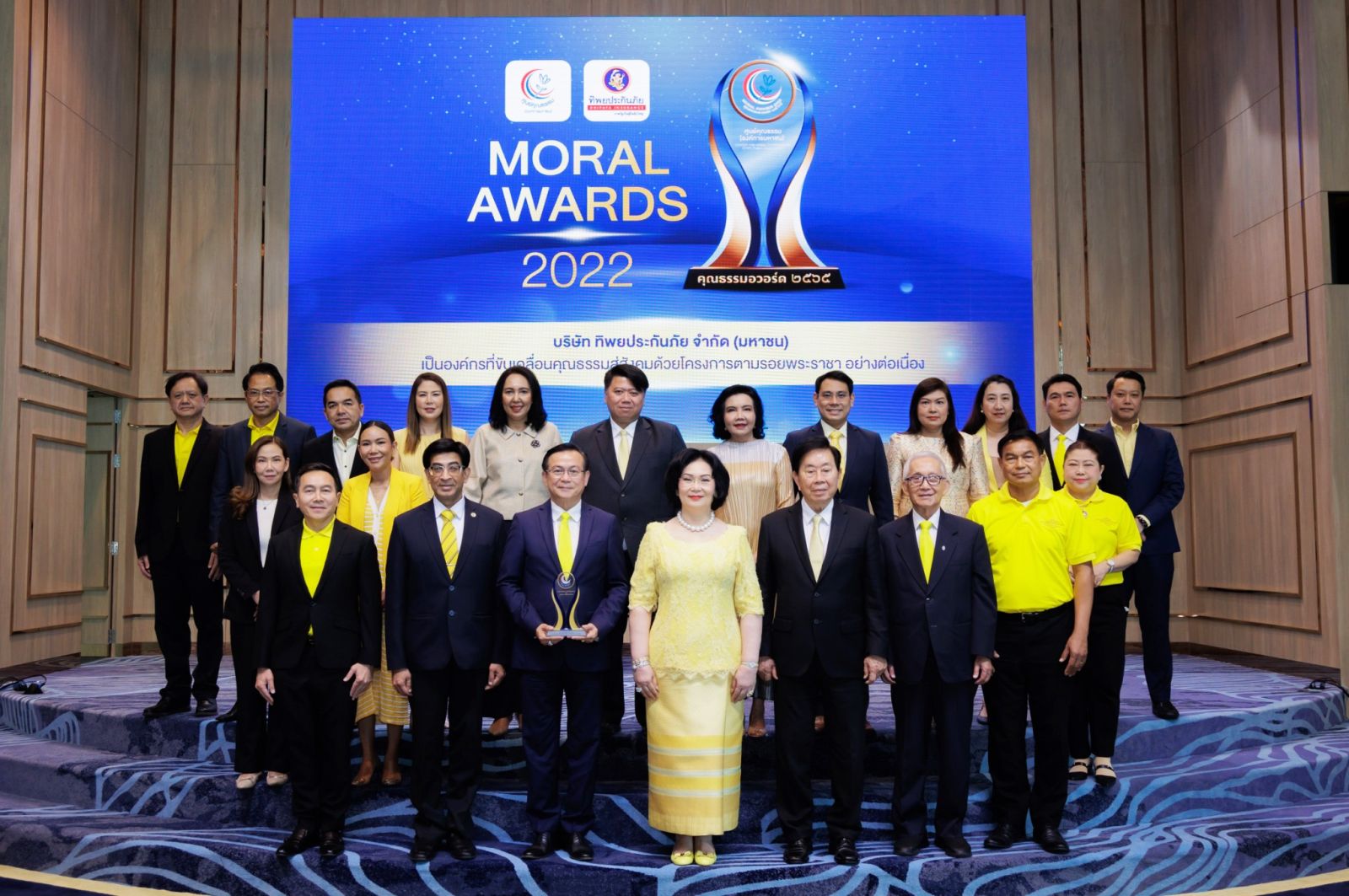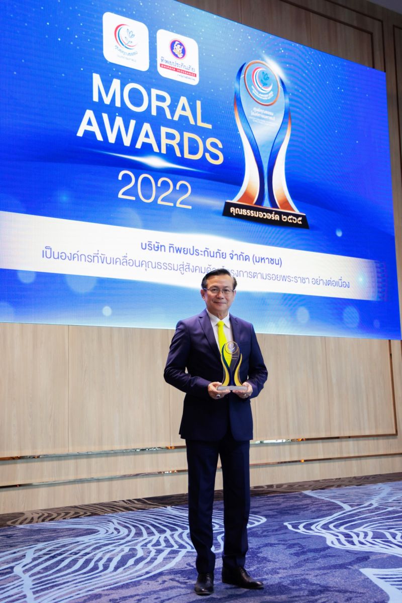 พิธีมอบรางวัล Moral Awards 2022 และเกียรติบัตร ได้รับเกียรติจาก คุณหญิงปัทมา ลีสวัสดิ์ตระกูล ประธานกรรมการศูนย์คุณธรรม และ รศ.นพ.สุริยเดว ทรีปาตี ผู้อำนวยการศูนย์คุณธรรม เป็นผู้มอบรางวัลให้แก่บริษัท ทิพยประกันภัย จำกัด (มหาชน) ซึ่งมี ดร.สมพร สืบถวิลกุล ประธานเจ้าหน้าที่บริหาร บริษัท ทิพย กรุ๊ป โฮลดิ้งส์ จำกัด (มหาชน) และกรรมการผู้จัดการใหญ่ บริษัท ทิพยประกันภัยจำกัด (มหาชน) เป็นผู้รับมอบ ทั้งนี้ยังได้รับเกียรติจาก นายสมใจนึก เองตระกูล ประธานกรรมการ พร้อมด้วยคณะกรรมการฯ ดร.ดนัย จันทร์เจ้าฉาย ประธานมูลนิธิธรรมดี นางวิชชุดา ไตรธรรม ที่ปรึกษากรรมการผู้จัดการใหญ่ ผู้บริหารและพนักงาน บริษัท ทิพยประกันภัย จำกัด (มหาชน) ร่วมในพิธี ณ อาคารทิพยประกันภัย สำนักงานใหญ่ พระราม 3