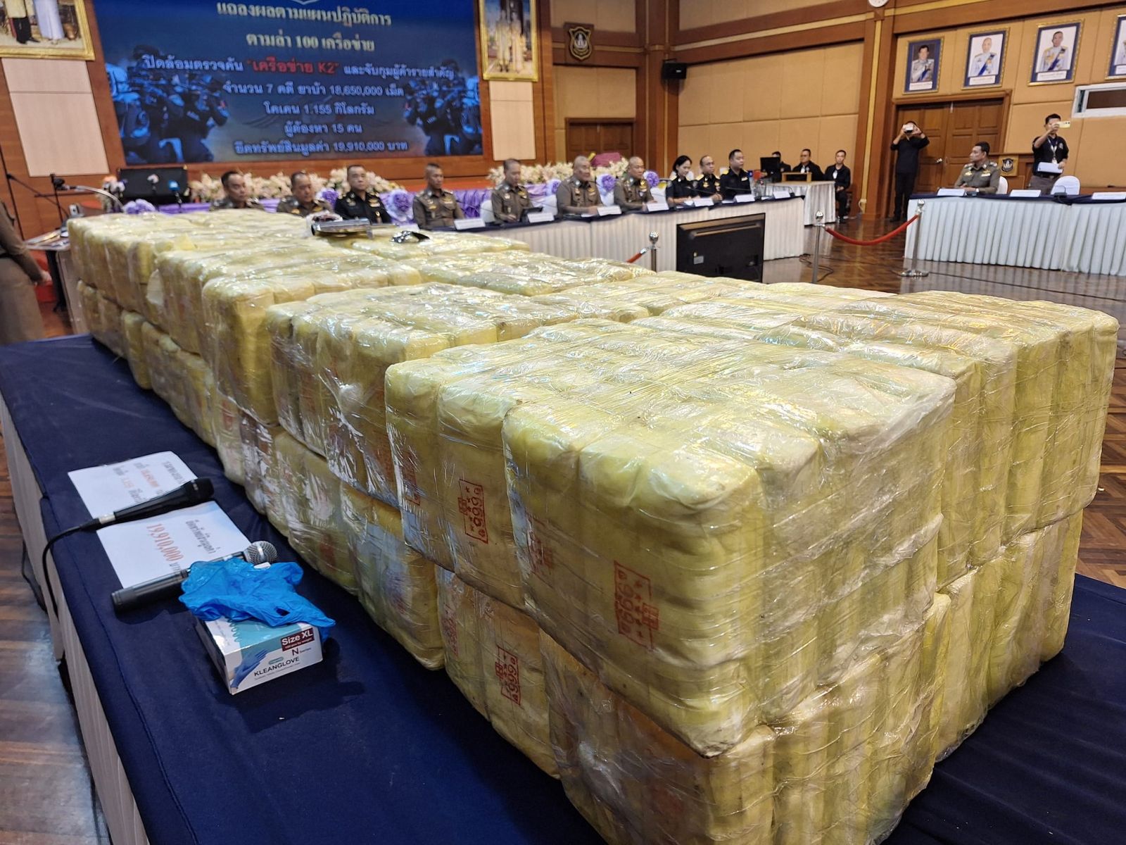 โดยยาบ้ากว่า 19 ล้านเม็ด โคเคนที่ถูกห่อหุ้มด้วยพลาสติกใสจำนวน 192 ก้อน น้ำหนักรวม 1,155 กิโลกรัม เป็นของกลางส่วนหนึ่งที่ยึดได้จากการจับกุมเครือข่ายผู้ค้ายาเสพติดในห้วง 2 สัปดาห์ที่ผ่านมารวม 7 เครือข่าย ผู้ต้องหา 15 คน ส่วนใหญ่เป็นเครือข่ายที่ลำเลียงยาเสพติดมาจากแนวชายแดนซึ่งประกาศเป็นที่ควบคุมสกัดกั้นพิเศษ คือ เชียงราย เชียงใหม่