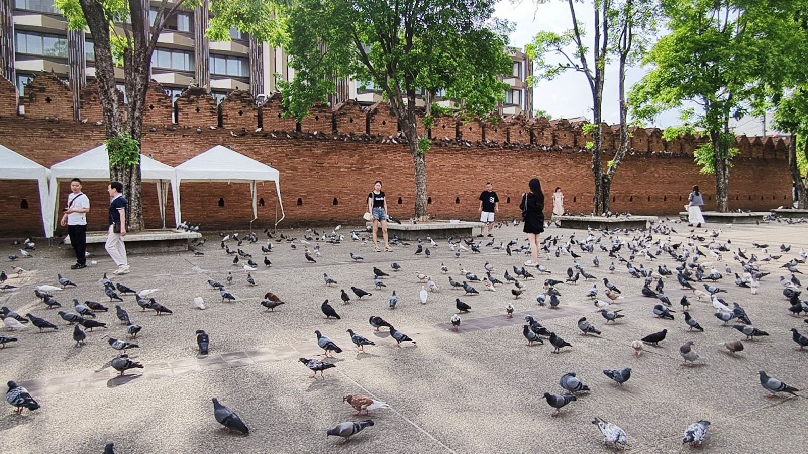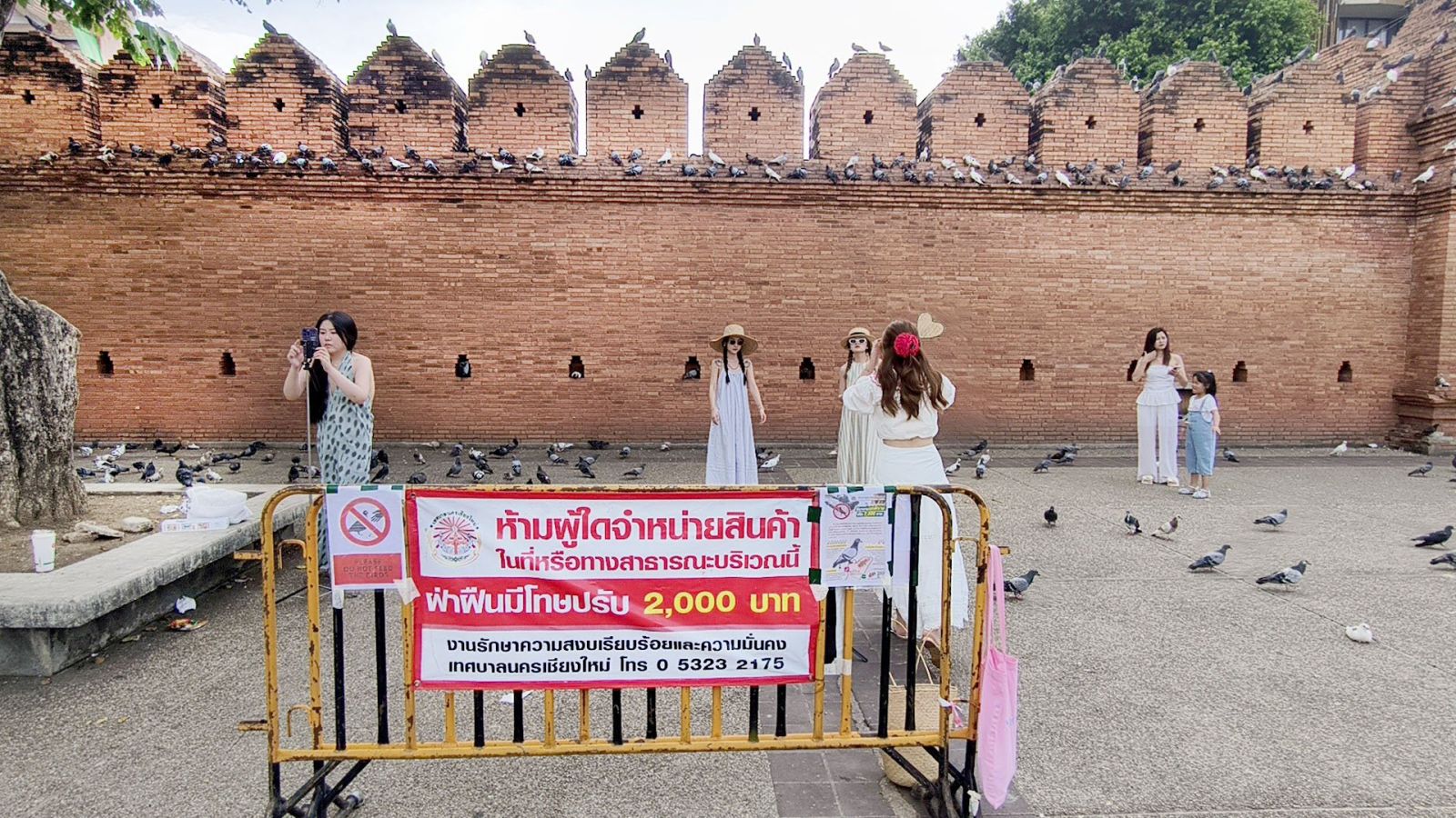 ประกาศแจ้งเตือนประชาน ห้ามให้อาหารนกพิราบ บริเวณลานประตูท่าแพ เด็ดขาด เนื่องจากมีความผิดตามพระราชบัญญัติ (พ.ร.บ.) การสาธารณสุข พ.ศ. 2535 โดยผู้ให้อาหารและผู้จำหน่ายอาหาร มีโทษจำคุกไม่เกิน 3 ปี ปรับไม่เกิน 25,000 บาท และ พ.ร.บ.รักษาความสะอาดและความเป็นระเบียบของบ้านเมือง พ.ศ.2535 มีโทษปรับสูงสุด 2,000 บาท หากพบเห็นคนจำหน่ายและให้อาหารนก สามารถโทรแจ้งได้ที่ 191 หรือแอดไลน์ @191chiangmai ก็สามารถแจ้งเข้ามาได้ตลอด