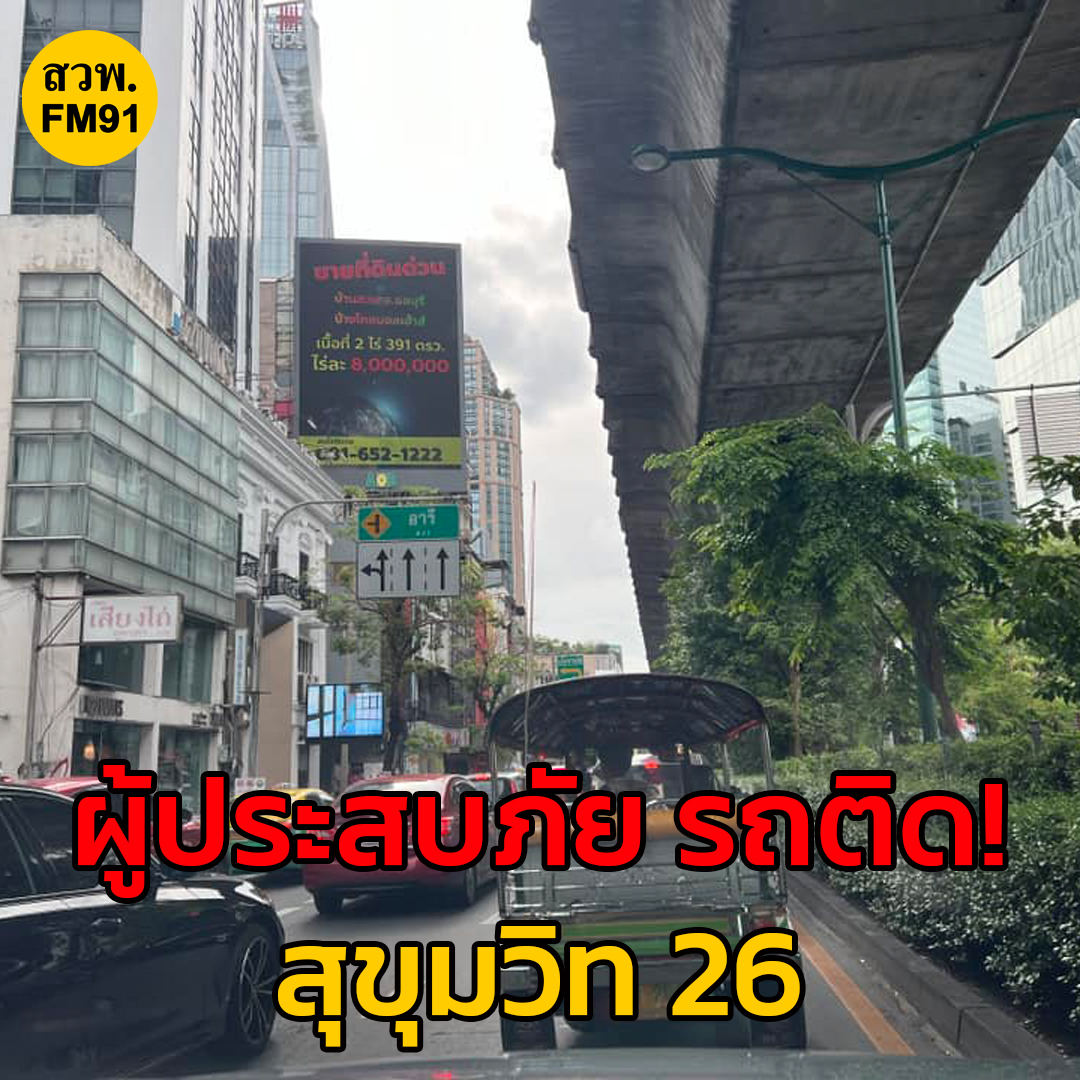 - ถ.สุขุมวิท ขาเข้า ท้ายสะสมไปถึงแยกเอกมัย