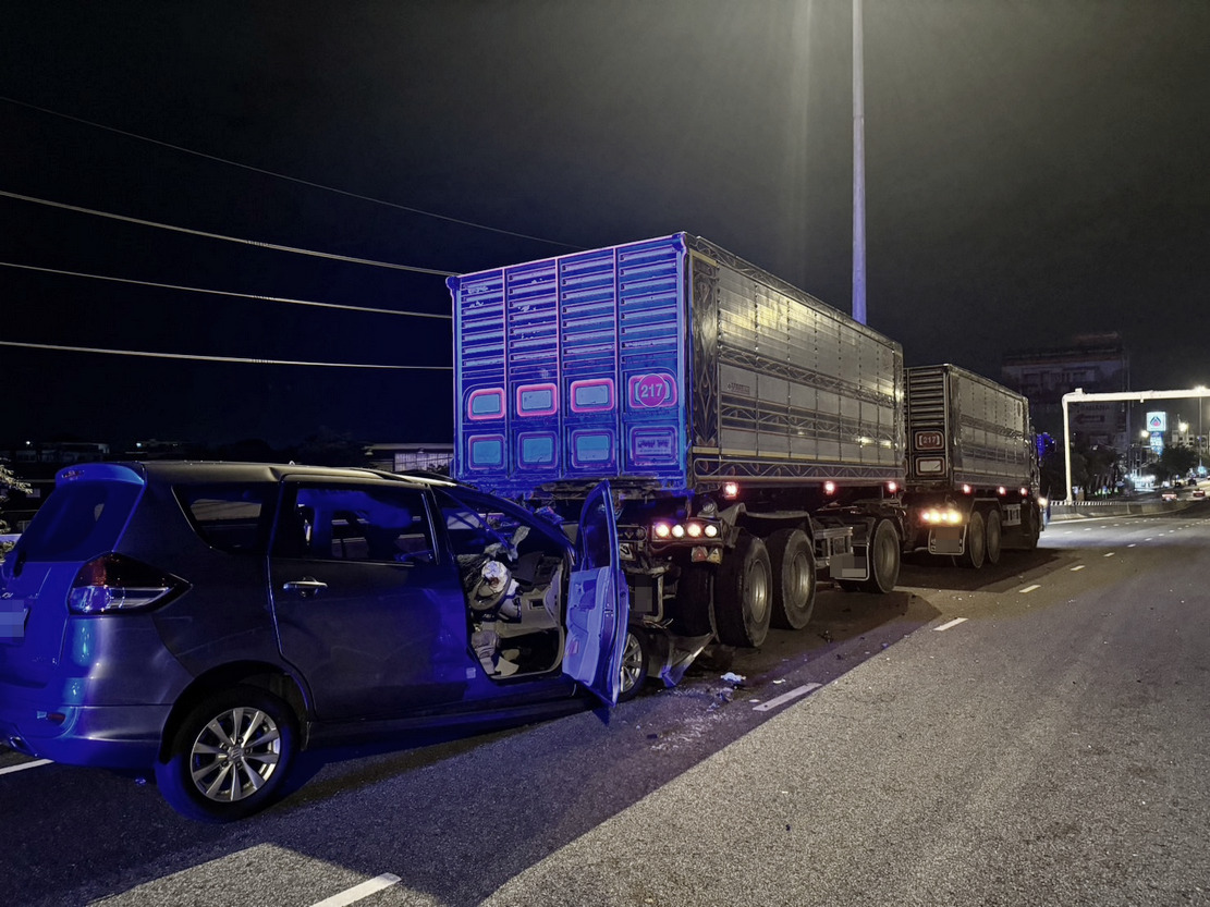 รถเก๋งชนกับรถพ่วง บนทางพิเศษฉลองรัช ช่วงเบี่ยงลงถนนรามอินทรา มีผู้บาดเจ็บอาการสาหัส