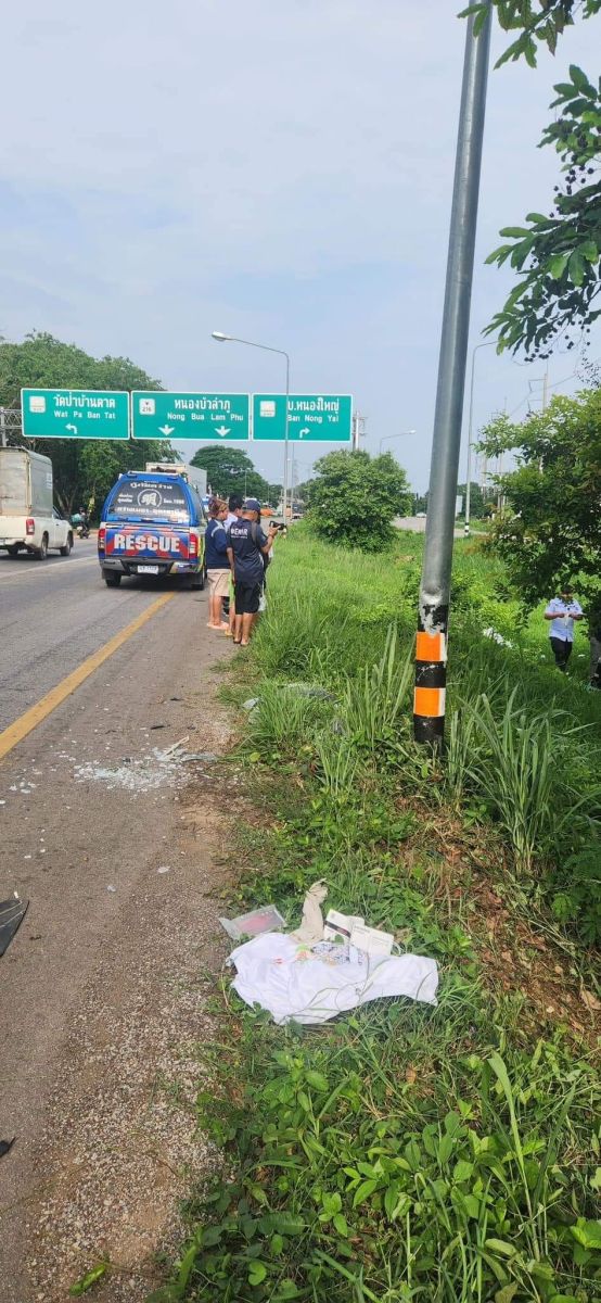 รถจักรยานยนต์ ชนเสาไฟข้างทาง มีผู้เสียชีวิตกระเด็นตกร่องกลางถนน จ.อุดรธานี
