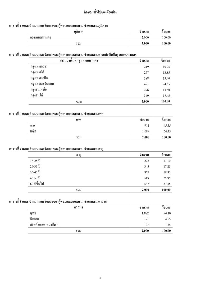 1. การส่งเสริมการท่องเที่ยวใน กทม. ตัวอย่าง ร้อยละ 43.05 ระบุว่า ค่อนข้างดี รองลงมา ร้อยละ 21.30 ระบุว่า ไม่ค่อยดี ร้อยละ 20.15 ระบุว่า ดีมาก ร้อยละ 8.20 ระบุว่า ไม่ดีเลย และร้อยละ 7.30 ระบุว่า ไม่มีข้อมูล