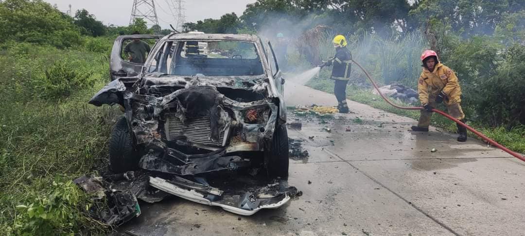 ลักษณะที่เกิดเหตุเป็นเพลิงลุกไหม้ รถกระบะ ยี่ห้ออีซูซุ รุ่นดีแม็กซ์ สีขาว หมายเลขทะเบียน กรุงเทพมหานคร รถใช้น้ำมันดีเซลเป็นเชื้อเพลิง เพลิงลุกไหม้เสียหายหมดทั้งคัน รถดับเพลิงใช้น้ำทำการดับเพลิงสงบ