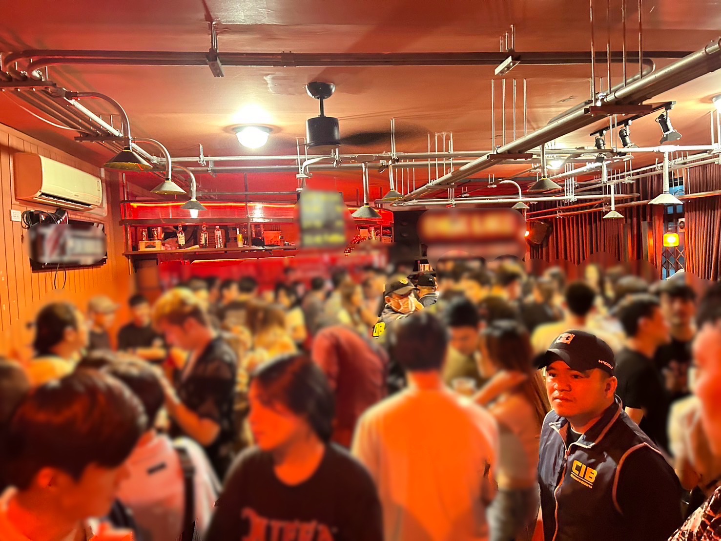 เจ้าหน้าที่ตำรวจได้เข้าไปตรวจสอบ สถานบริการที่ 3 พบว่า ภายในร้านเปิดเพลงเสียงดังสนั่น มีนักท่องเที่ยวเต้นอยู่ภายในร้านจำนวนกว่า 100 ราย เจ้าหน้าที่ตำรวจจึงได้ให้ปิดเพลงและเปิดไฟให้แสงสว่าง ภายในผับได้เกิดความโกลาหล นักเที่ยวหลายคนต่างพยายามหลบหนี แต่เจ้าหน้าที่ตำรวจชุดจับกุมได้ปิดล้อมประตูไว้ทุกด้าน จึงไม่สามารถหนีออกไปได้