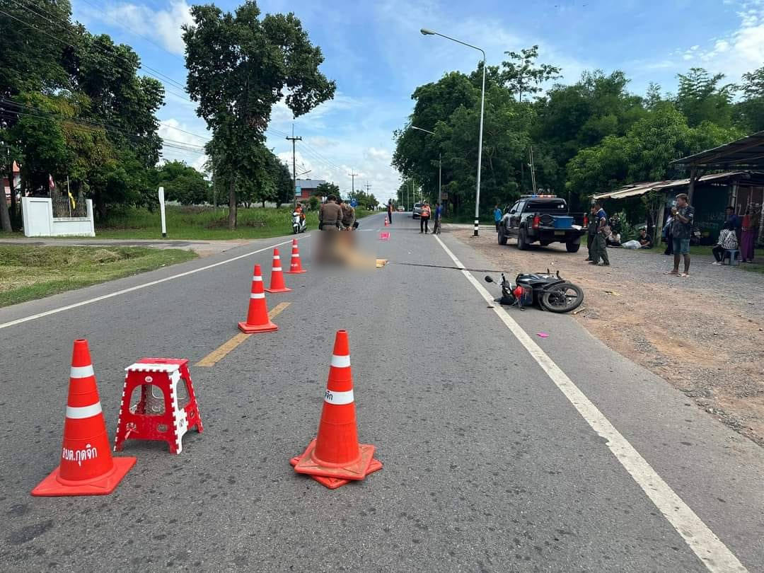 รถจักรยานยนต์ 2 คันชนกันกลางถนนหน้าที่ทำการ อบต. คุณป้าวัย 67 ปีเสียชีวิต จ.หนองบัวลำภู