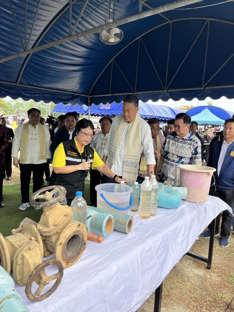 วันที่ 8 มิถุนายน 2567 เวลา 16.00 น. นายเศรษฐา ทวีสิน นายกรัฐมนตรี และคณะ เดินทางพบปะประชาชนต่อเนื่อง รับฟังปัญหาขาดแคลนน้ำสะอาดในการอุปโภคบริโภค ณ ตำบลน้ำดิบ อำเภอป่าซาง จังหวัดลำพูน รวมถึงแผนงานช่วยเหลือบรรเทาความเดือดร้อนแก่ประชาชนของกระทรวงทรัพยากรธรรมชาติและสิ่งแวดล้อม โดยกรมทรัพยากรน้ำบาดาล ตำบลน้ำดิบ อำเภอป่าซางจังหวัดลำพูน เป็นพื้นที่ประสบปัญหาขาดแคลนน้ำสะอาดเพื่ออุปโภคบริโภค แหล่งน้ำผิวดินมีความขุ่น มีกลิ่นและมีสารเคมีเกษตรเจือปน ไม่สามารถนำมาใช้อุปโภคได้ ระบบประปาหมู่บ้านที่ใช้อยู่ในปัจจุบัน เจาะน้ำบาดาลที่ความลึกไม่เกิน 120 เมตร มีหินปูน สนิมเหล็ก ฟลูออไรด์ และแมงกานีสจำนวนมาก ทำให้ระบบกรองน้ำและท่อส่งน้ำอุดตันเร็วกว่าปกติ องค์การบริหารส่วนตำบล น้ำดิบต้องใช้งบประมาณในการเปลี่ยนทรายกรองน้ำและท่อประปาภายในหมู่บ้านไม่ต่ำกว่า 450,000 บาทต่อปี แต่ประชาชนในพื้นที่ยังคงต้องใช้น้ำที่มีหินปูนและมีสนิมเหล็กเจือปน ส่งผลกระทบต่อการใช้ชีวิตประจำวัน