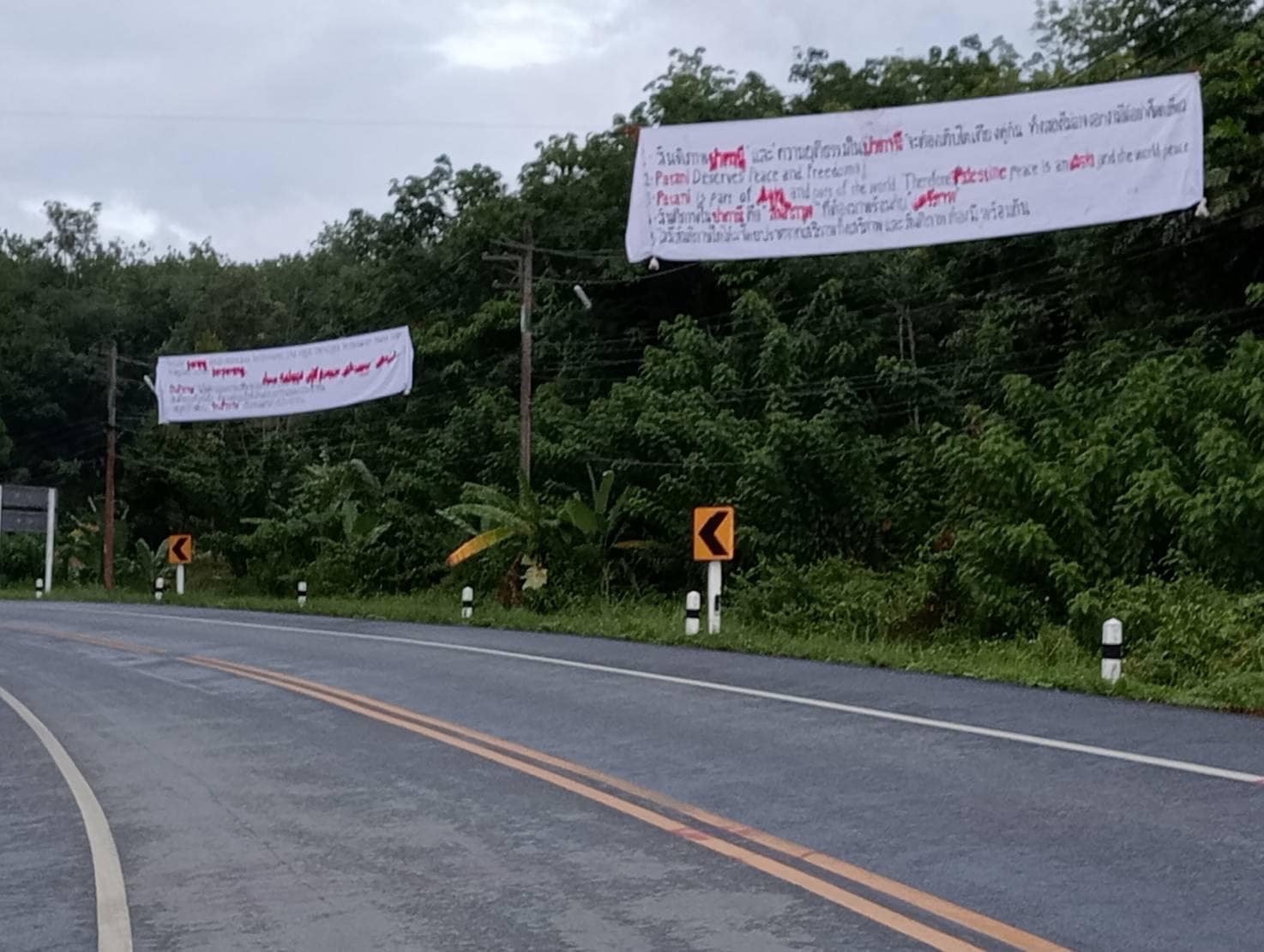 3.พื้นที่ อ.ธารโต พบมีการแขวนป้ายผ้า จำนวน 1 จุด และ มีวัตถุต้องสงสัยผูกติดกับเสาบอกป้ายทาง บนถนน สาย 410 ธารโต - เบตง ในพื้นที่ ต.บ้านแหร อ.ธารโต จ.ยะลา