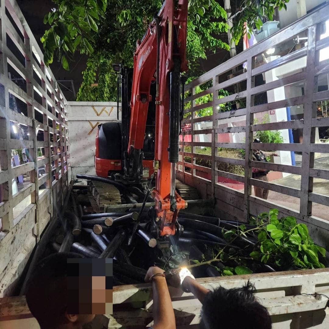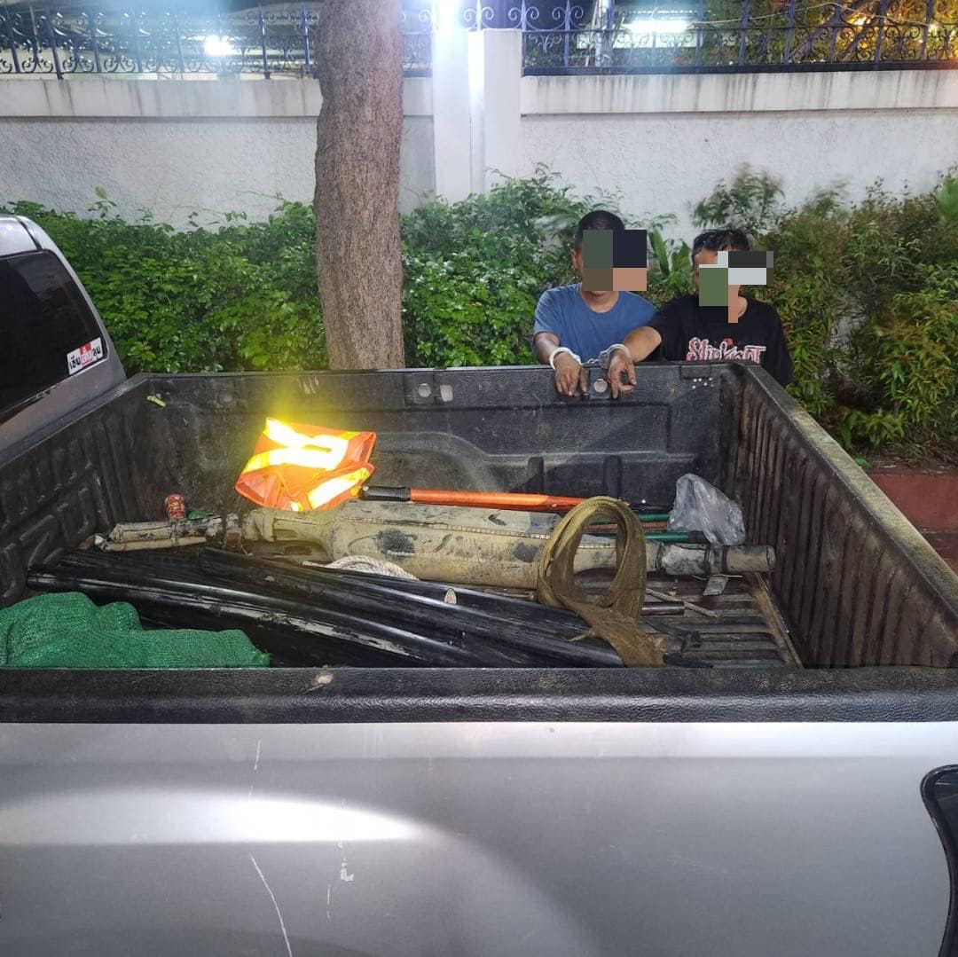 สืบเนื่องจากได้รับแจ้งมีกลุ่มคนร้ายกำลังลงมือก่อเหตุลักขโมยสายเคเบิล เมื่อกำลังไปถึงพบชายฉกรรจ์ กำลังช่วยกันใช้คีมตัดเหล็กตัดสายเคเบิลขนาดใหญ่ และนำขึ้นไปใส่ไว้บนท้ายรถกระบะ และมีชายอีกกลุ่มหนึ่งกำลังลากสายเคเบิลจากใต้ดินขึ้นมาจากท่อ โดยใช้รถแบ็กโฮ ที่อยู่บนรถบรรทุกหกล้อลากดึงขี้นมา โดยเมื่อกลุ่มผู้ก่อเหตุพบเห็นเจ้าหน้าที่ตำรวจจึงได้แยกย้ายกันวิ่งหลบหนี ซึ่งเจ้าหน้าที่สามารถควบคุมตัวผู้ร่วมก่อเหตุได้ จำนวน 2 ราย