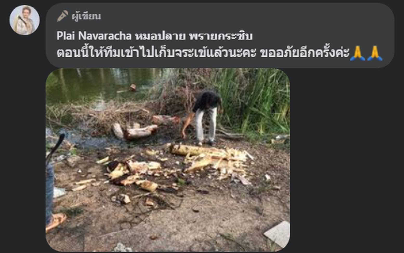 พร้อมกับโพสต์ภาพหลังเข้าไปเก็บจระเข้ พร้อมแจ้งเพิ่มเติมว่า "ตอนนี้ให้ทีมเข้าไปเก็บจระเข้แล้วนะคะ ขออภัยอีกครั้งค่ะ"