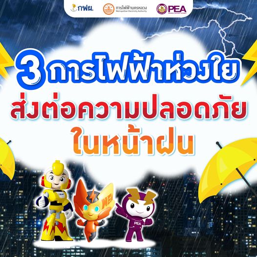 #ความปลอดภัยในหน้าฝน #3การไฟฟ้า #MEA #การไฟฟ้านครหลวง #PEA #การไฟฟ้าส่วนภูมิภาค #กฟผ #EGAT #การไฟฟ้าฝ่ายผลิตแห่งประเทศไทย