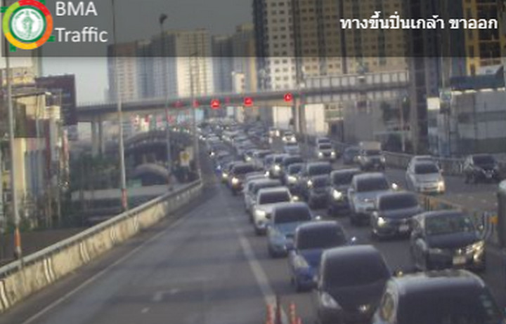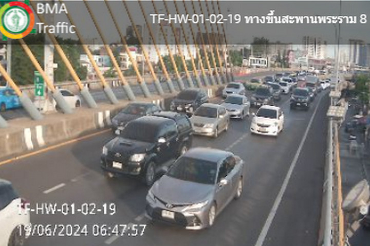07.00 น. สะพานสมเด็จพระปิ่นเกล้า และสะพานพระราม 8 ขาเข้า รถมาก ท้ายแถวสะสมแยกอรุณอมรินทร์