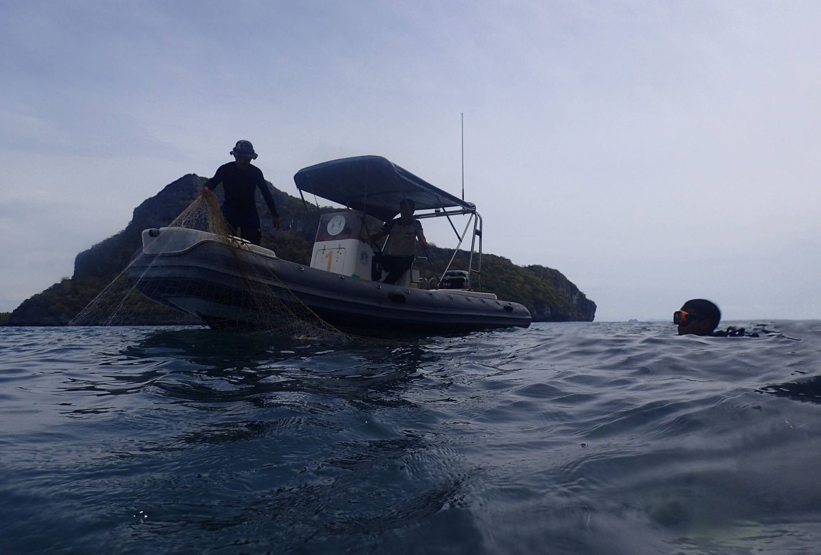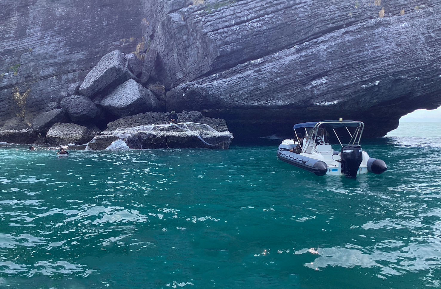 วันที่ 19 มิถุนายน 2567 เจ้าหน้าที่ชุดสายตรวจฯ พร้อมด้วยฝ่ายวิชาการและนักดำน้ำ ร่วมกันตรวจสอบและทำการเก็บกู้ซากอวนที่คลื่นทะเลซัดปกคลุมโขดหินและแนวปะการังโดยรอบชายฝั่งบริเวณด้านทิศตะวันตกของเกาะหนุมาน ที่พิกัด 47P N574307 E1070824 ตรวจพบซากอวนสภาพค่อนข้างเก่ามีความยาวประมาณ 100 เมตร ลักษณะของซากอวนเป็นเครื่องมือประมงพื้นบ้านที่ขาดหลุดลอยแล้วถูกคลื่นและกระแสน้ำพัดเข้ามาในพื้นที่ฯ โดยคลื่นซัดติดโขดหินริมชายฝั่งและปกคลุมแนวปะการังน้ำตื้นคิดเป็นพื้นที่ประมาณ 180 ตารางเมตร ตรวจสอบพบซากสัตว์ทะเลทั่วไปจำนวนหนึ่งไม่พบสัตว์ทะเลหายากติดอยู่ในซากอวน จึงเร่งทำการเก็บกู้ซากอวนออกจากแนวปะการังเพื่อป้องกันความเสียหายและฟื้นฟูสภาพพื้นที่ฯ โดยพบร่องรอยแนวปะการังได้รับความเสียหายเพียงเล็กน้อย จึงได้บันทึกปัจจัยคุกคามเป็นฐานข้อมูลตามระบบลาดตระเวนเชิงคุณภาพ (Smart Patrol) เพื่อการติดตามป้องกันและลดผลกระทบต่อทรัพยากรธรรมชาติในพื้นที่ฯ ต่อไป