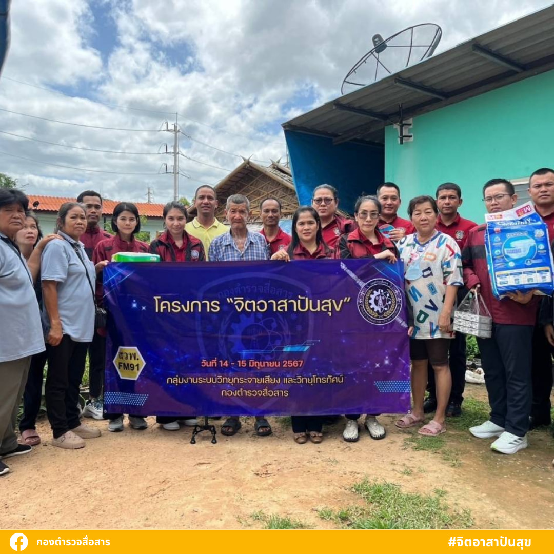 วันที่ ๑๔ มิถุนายน ๒๕๖๗ ทางกองตำรวจสื่อสาร ร่วมกับ สวพ.๙๑ นำโดย พ.ต.อ วงกต สุวรรณวัฒน์ ผกก.กวท.สส. และข้าราชการตำรวจในสังกัด กวท.สส. ได้ดำเนินกิจกรรมภายใต้โครงการ "จิตอาสาปันสุข" โดยนำสิ่งของที่รับบริจาค มามอบให้ผู้ป่วยติดเตียง ผู้ด้อยโอกาส ณ อ.เขาย้อย จ.เพชรบุรี