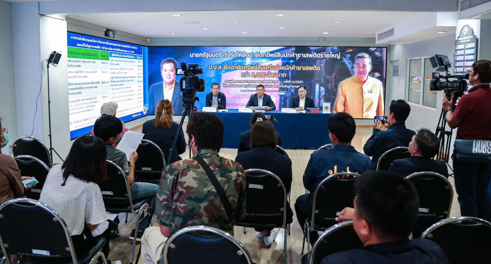 ป.ป.ส. ร่วมแถลงผลการ ยึดอายัดทรัพย์สินเครือข่ายนักค้ายาเสพติดรายสำคัญกว่า 2,000 ล้านบาท ณ ศูนย์ปฏิบัติการ สำนักงาน ป.ป.ส.
