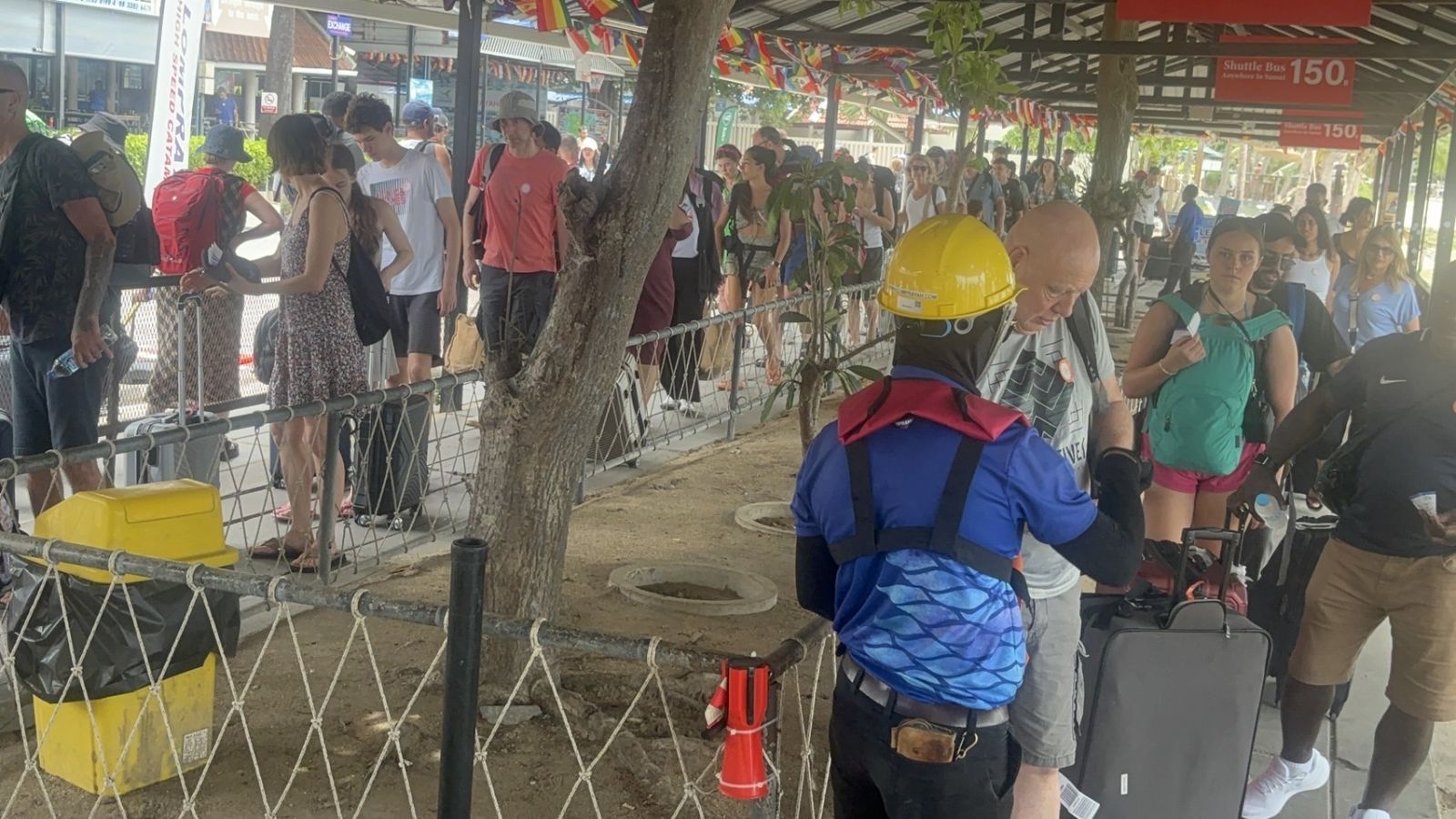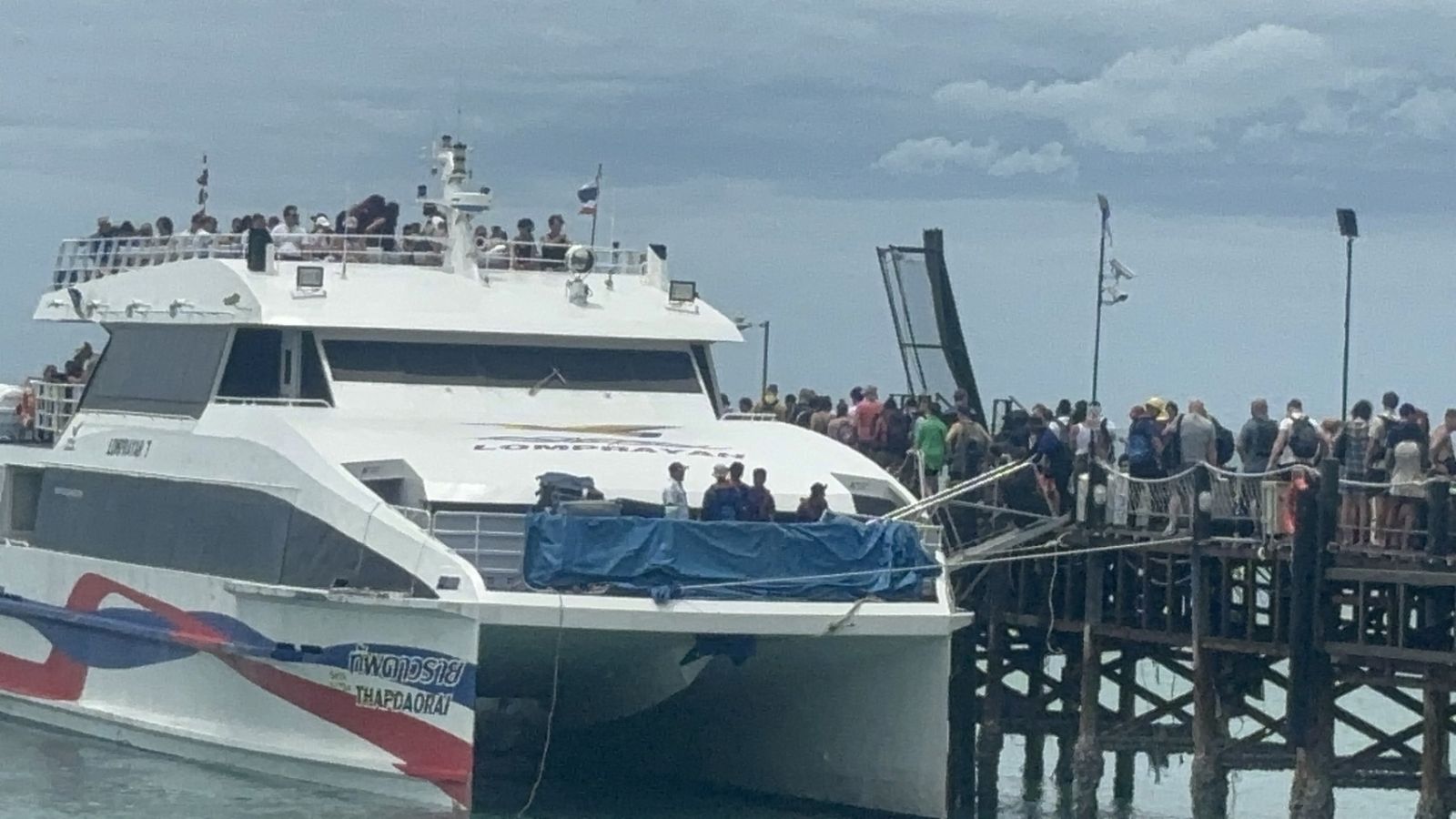 นักท่องเที่ยวชาวต่างชาติเดินทางรอซื้อตั๋วลงเรือจากเกาะสมุย ไปร่วมกิจกรรมฟูลมูนปาร์ตี้ที่เกาะพะงันในคืนวันพระจันทร์เต็มดวง อย่างคึกคัก