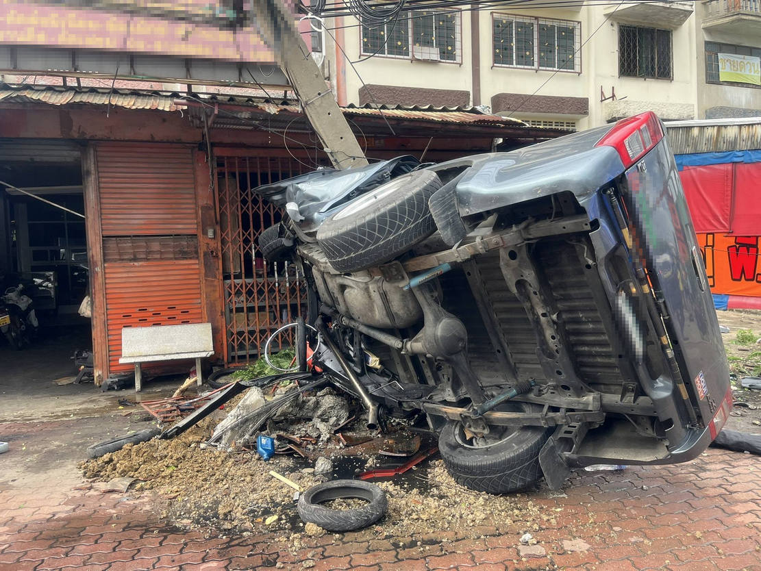ที่เกิดเหตุ พบรถกระบะ อีซูซู สีเทา ป้ายทะเบียน 8287 กรุงเทพมหานคร ลักษณะพลิกตะแคงชนกับเสาไฟฟ้า สภาพหลังคายุบพังเสียหาย และพบว่ามีผู้เสียชีวิต เป็นชาย อายุประมาณ 31 ปี ร่างยังติดค้างภายในยานพาหนะ ทางอาสากู้ภัยต้องใช้เครื่องมือตัดถ่างเพื่อนำร่างออกจากตัวรถ ทางเจ้าหน้าที่จะตรวจสอบเก็บหลักฐานเพิ่มเติม เพื่อหาสาเหตุที่แท้จริงต่อไป