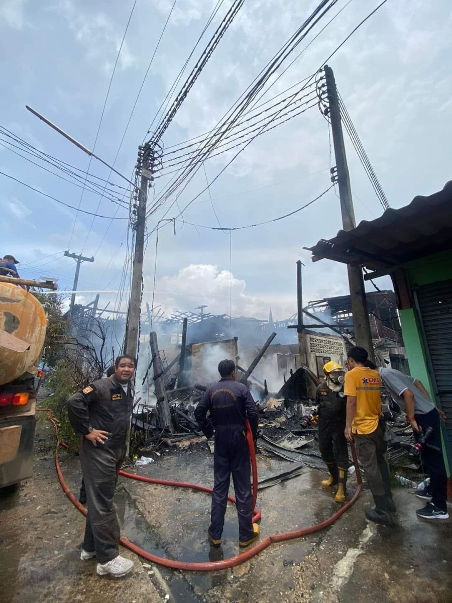 จุดเกิดเหตุเป็นย่านชุมชุนมีการปลูกสร้างห้องแถวติดกันหลายหลังและเป็นบ้านไม้เก่าแก่อายุกว่า 50 ปี ซึ่งเป็นเชื้อเพลิงอย่างดี จนท.ใช้เวลาดับเพลิงนานกว่า 1 ชั่วโมง จึงสามารถควบคุมเพลิงเอาไว้ได้ แต่เปลวเพลิงก็ได้เผาไหม้ห้องแถววอดไป 4 คูหา ส่วนคูหาที่ 5 ได้รับความเสียหายจากเปลวไฟบางส่วน
