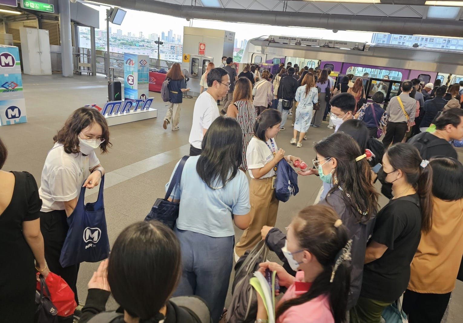การรถไฟฟ้าขนส่งมวลชนแห่งประเทศไทย (รฟม.) จัดกิจกรรมลูกค้าสัมพันธ์ “Customer Care Day 2024” ในคอนเซ็ป “MRTA : Just the way You Are สนับสนุนทุกความเป็นตัวคุณและสนับสนุนการเดินทางด้วยรถไฟฟ้า MRT” โดยส่งมอบความสนุกและสร้างรอยยิ้มกับกิจกรรมพิเศษแจกบัตรโดยสารรถไฟฟ้า MRT Plus มูลค่าเดินทาง 200 บาท (จำนวนจำกัด) และแจกของที่ระลึกอื่น ๆ ให้กับลูกค้าผู้ใช้บริการรถไฟฟ้ามหานคร สายฉลองรัชธรรม (MRT สายสีม่วง) อาทิ กระเป๋าผ้าหลากสี จำนวน 200 ชิ้น ร่มพับ จำนวน 100 คัน และพวงกุญแจพร้อมเสื้อกันฝน จำนวน 100 ชิ้น ณ บริเวณชานชาลา ชั้น 4 สถานีรถไฟฟ้าเตาปูน