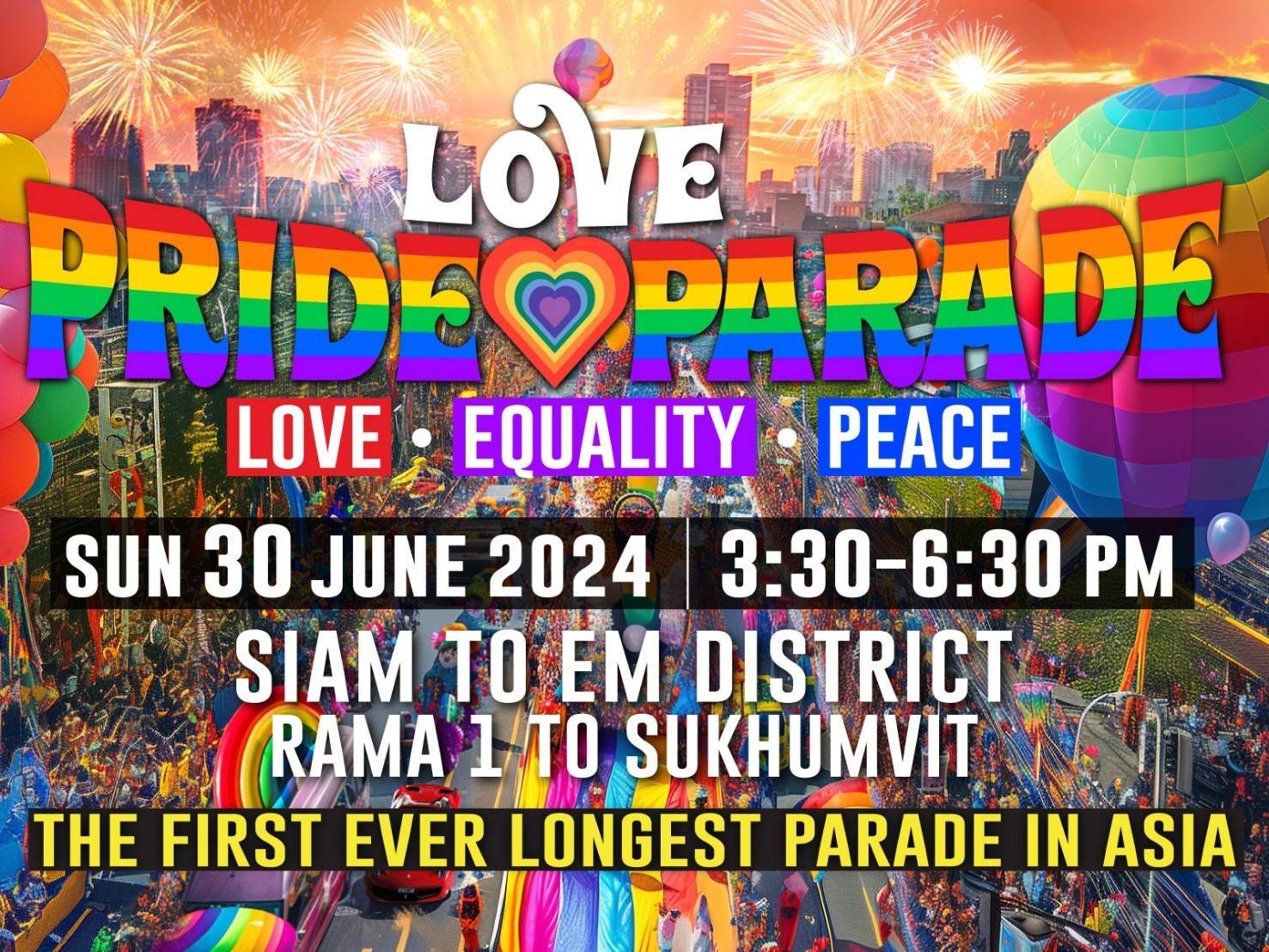 30 มิถุนายน นี้ ส่งท้ายยิ่งใหญ่เทศกาล PRIDE ด้วยขบวนพาเหรดยาวที่สุดในเอเชีย โชว์ความพร้อมเป็นเจ้าภาพ WORLD PRIDE 2030