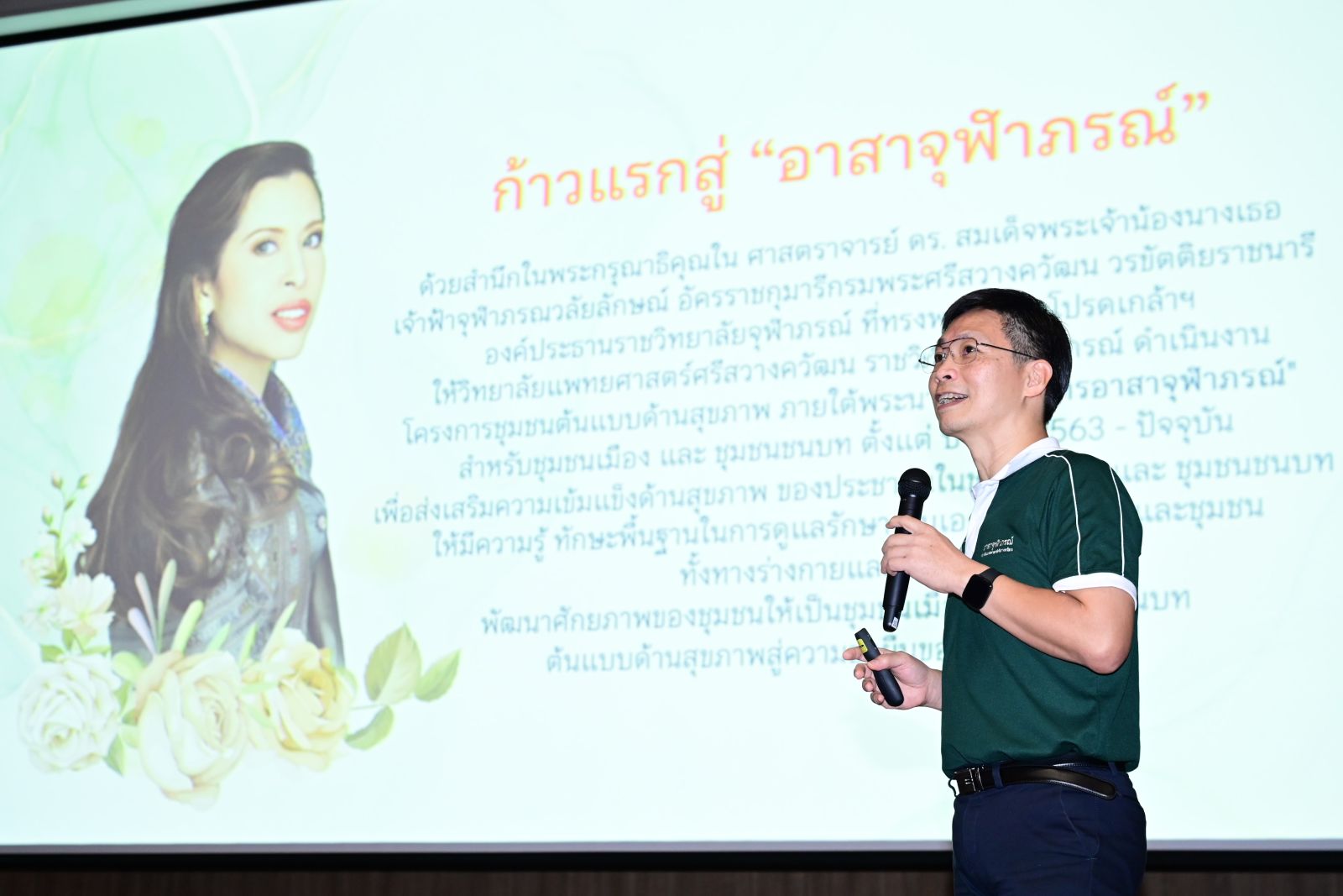 วิทยาลัยแพทยศาสตร์ศรีสวางควัฒน ราชวิทยาลัยจุฬาภรณ์ ได้จัดงานแถลงข่าวความก้าวหน้า “โครงการอาสาจุฬาภรณ์” ซึ่งเริ่มต้นโครงการตั้งแต่ปี พ.ศ. 2563 จนถึงปัจจุบัน พร้อมผู้นำชุมชนและผู้ที่สนใจด้านสุขภาพเพื่อสร้างชุมชนต้นแบบอย่างยั่งยืน โดยมี รองศาสตราจารย์ นายแพทย์ธีรภัทร อึ้งตระกูล รักษาการคณบดีวิทยาลัยแพทยศาสตร์ศรีสวางควัฒน พร้อมด้วย ผู้ช่วยศาสตราจารย์ นายแพทย์วิสุทธิ์ ล้ำเลิศธน รักษาการรองคณบดีวิทยาลัยแพทยศาสตร์ศรีสวางควัฒน และประธานโครงการอาสาจุฬาภรณ์ ผู้ช่วยศาสตราจารย์ นายแพทย์ณัฐวุฒิ กันตถาวร ผู้ช่วยคณบดีฝ่ายบริการวิชาการ และผู้ช่วยศาสตราจารย์ ดร.วิริยะ มหิกุล อาจารย์ประจำวิทยาลัยแพทยศาสตร์ศรีสวางควัฒน หัวหน้าโครงการวิจัยชุมชนอาสาจุฬาภรณ์ ร่วมกันรายงานความก้าวหน้าและเสนอมุมมองการพัฒนาสุขภาพในชุมชน ของโครงการฯ