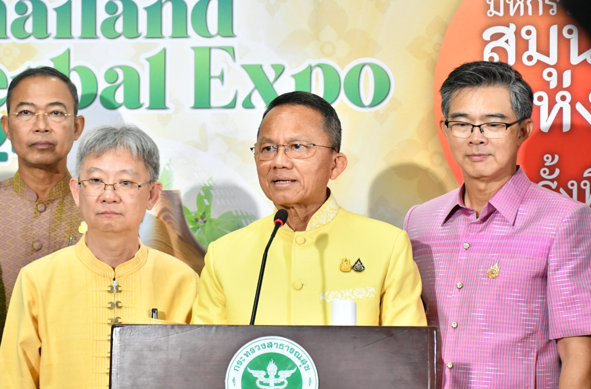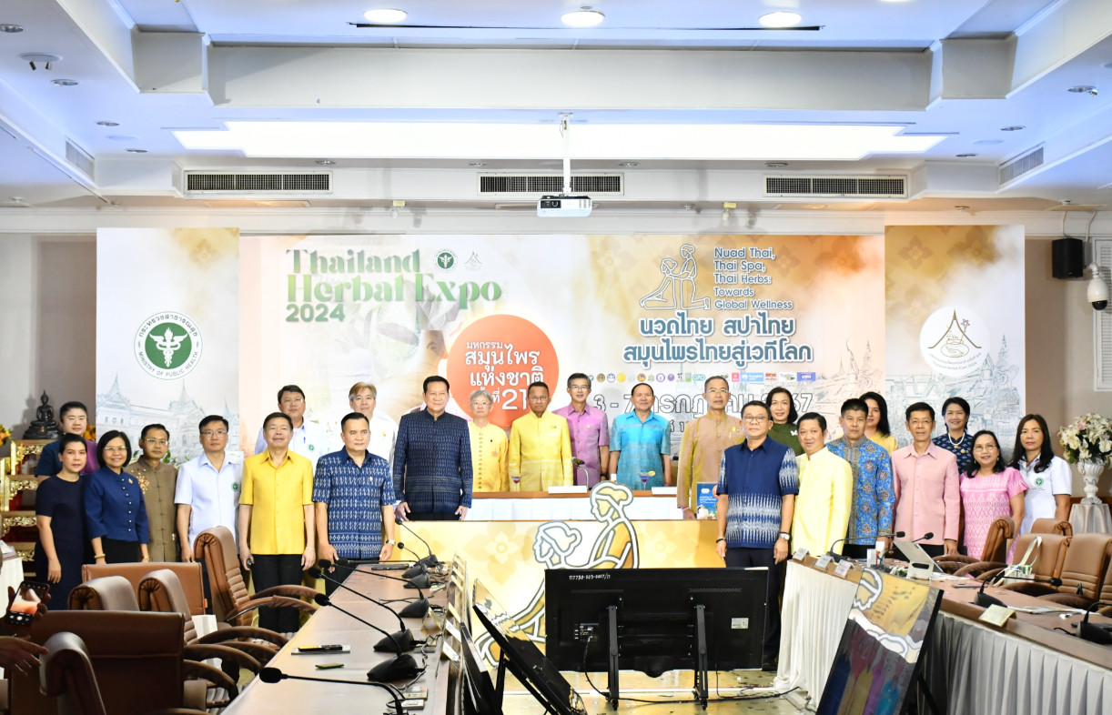 วันนี้ (27 มิถุนายน 2567) ที่ กระทรวงสาธารณสุข จ.นนทบุรี นายสมศักดิ์ เทพสุทิน รัฐมนตรีว่าการกระทรวงสาธารณสุข พร้อมด้วย นพ.โอภาส การย์กวินพงศ์ ปลัดกระทรวงสาธารณสุข นพ.ทวีศิลป์ วิษณุโยธิน อธิบดีกรมการแพทย์แผนไทยและการแพทย์ทางเลือก พญ.ชนิดา สยุมภูรุจินันท์ ผู้อำนวยการโรงพยาบาลเจ้าพระยาอภัยภูเบศร จ.ปราจีนบุรี พญ.มิ่งขวัญ สุพรรณพงศ์ ผู้อำนวยการองค์การเภสัชกรรม นายเสรัช ตั้งตรงจิตร ผู้อำนวยการโรงเรียนนวดแผนโบราณเชตวัน ร่วมแถลงข่าวการจัดงานมหกรรมสมุนไพรแห่งชาติฯ ครั้งที่ 21 ภายใต้แนวคิด “นวดไทย สปาไทย สมุนไพรไทย สู่เวทีโลก” ระหว่างวันที่ 3 - 7 กรกฎาคม 2567 ที่ ฮอลล์ 11 – 12 อิมแพค เมืองทองธานี จ.นนทบุรี