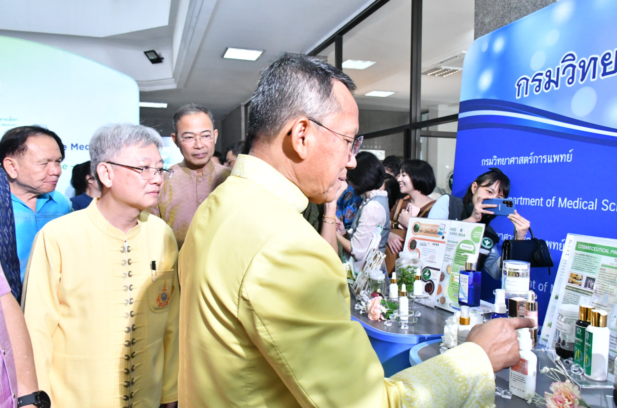 นายสมศักดิ์ กล่าวต่อว่า กระทรวงสาธารณสุขได้ส่งเสริมพัฒนาสมุนไพรอย่างครบวงจร โดยในส่วนของต้นน้ำ มีการขยายพื้นที่เพะปลูกสมุนไพรจาก 18,000 ไร่ เป็น 1,059,818 ไร่ เกษตรกรปลูกสมุนไพรเพิ่มขึ้นจาก 5,400 ราย เป็นกว่า 360,000 ราย ส่วนกลางน้ำ มีโรงงานภาคเอกชนผลิตยาสมุนไพร ประมาณ 1,000 แห่ง โรงงานสกัด 11 แห่ง และโรงพยาบาลที่ผลิตยาสมุนไพรตามมาตรฐาน WHO GMP ทั่วประเทศ 46 แห่ง คิดเป็นมูลค่าการใช้ยาสมุนไพรในระบบบริการสุขภาพทั่วประเทศ เฉลี่ยปีละ 1.5 พันล้านบาท และในส่วนปลายน้ำ ในปี 2566 ผลิตภัณฑ์สมุนไพรภายในประเทศมีมูลค่า 56,944 ล้านบาท มีการส่งเสริมด้านการวิจัยและพัฒนาสมุนไพรมากขึ้น โดยพัฒนาต่อยอดสมุนไพรแชมเปี้ยน 12 รายการ มีผลงานวิจัยมากกว่า 141 โครงการ เพิ่มมูลค่าการส่งออกได้กว่า 6,604 ล้านบาท และยังเพิ่มการลงทุนเพื่อการวิจัยและนวัตกรรมเป็น 3,631 ล้านบาท โดยเป็นการวิจัยพัฒนาสมุนไพรอย่างครบวงจร กว่า 1,295 โครงการ
