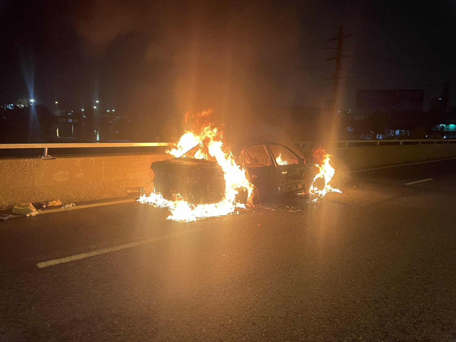 ไฟไหม้รถยนต์ บนด่วนขั้นที่ 1 ช่วงเนินสุขุมวิท 62 เสียหายวอดทั้งคัน
