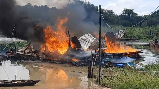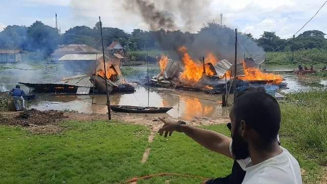 ไฟไหม้เรือนแพ ก่อนเปลวไฟลุกลามเผาแพใกล้เคียงพร้อมกระชังปลา เสียหายวอด