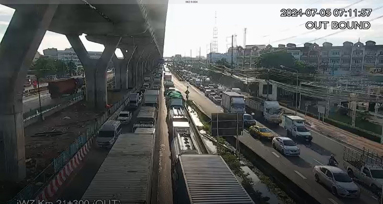 ขณะนี้ ปัดรถเข้าช่องทางคู่ขนานทั้งหมด ตั้งแต่ กม.22 ตอนนี้ การจราจรติดขัดมาก