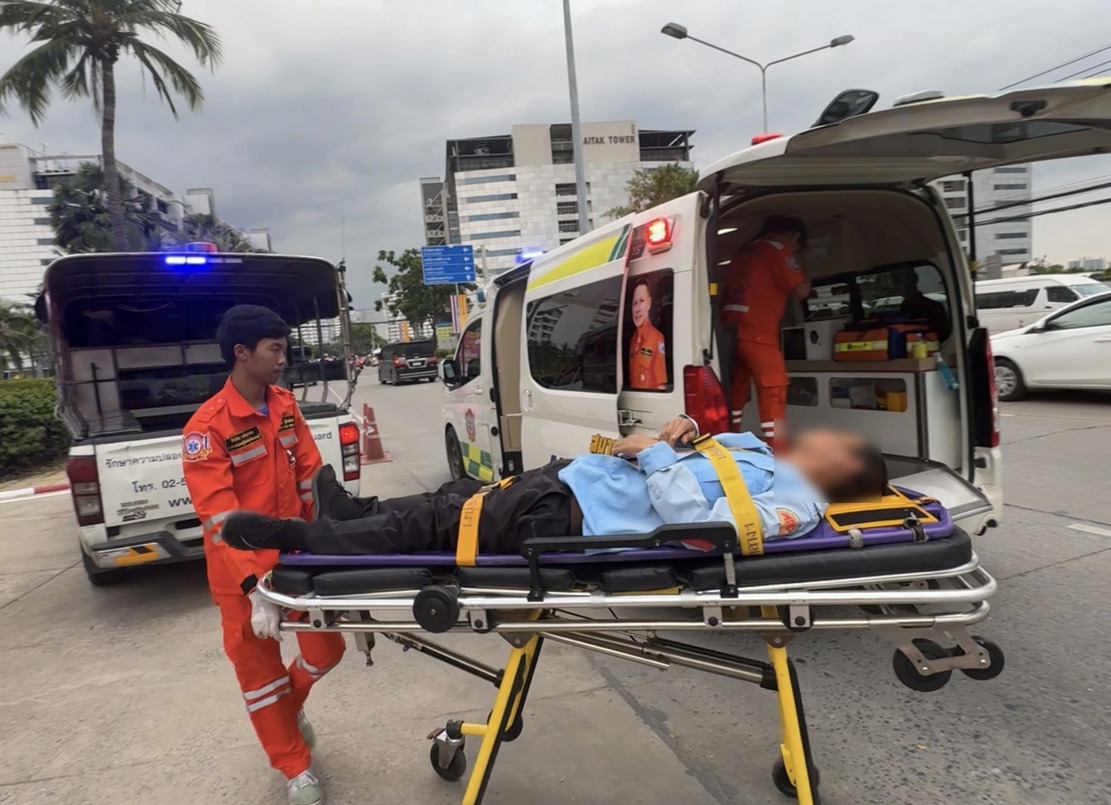 เมื่อเวลา 18.00 น.วันที่ 6 ก.ค. 67 เจ้าหน้าที่กู้ชีพบัวเพชร ได้รับแจ้งจากเจ้าหน้าที่รักษาความปลอดภัยของอาคารอิมแพ็คเมืองทองธานี ขอความช่วยเหลือมี รปภ.ล้มหมดสติหน้าคว่ำกับพื้นทางเท้า ที่บริเวณปัอมรปภ.หน้าอิมแพ็คเมืองทองธานี ต.บ้านใหม่ อ.ปากเกร็ด จ.นนทบุรี จึงรุดช่วยเหลือเป็นการเร่งด่วน