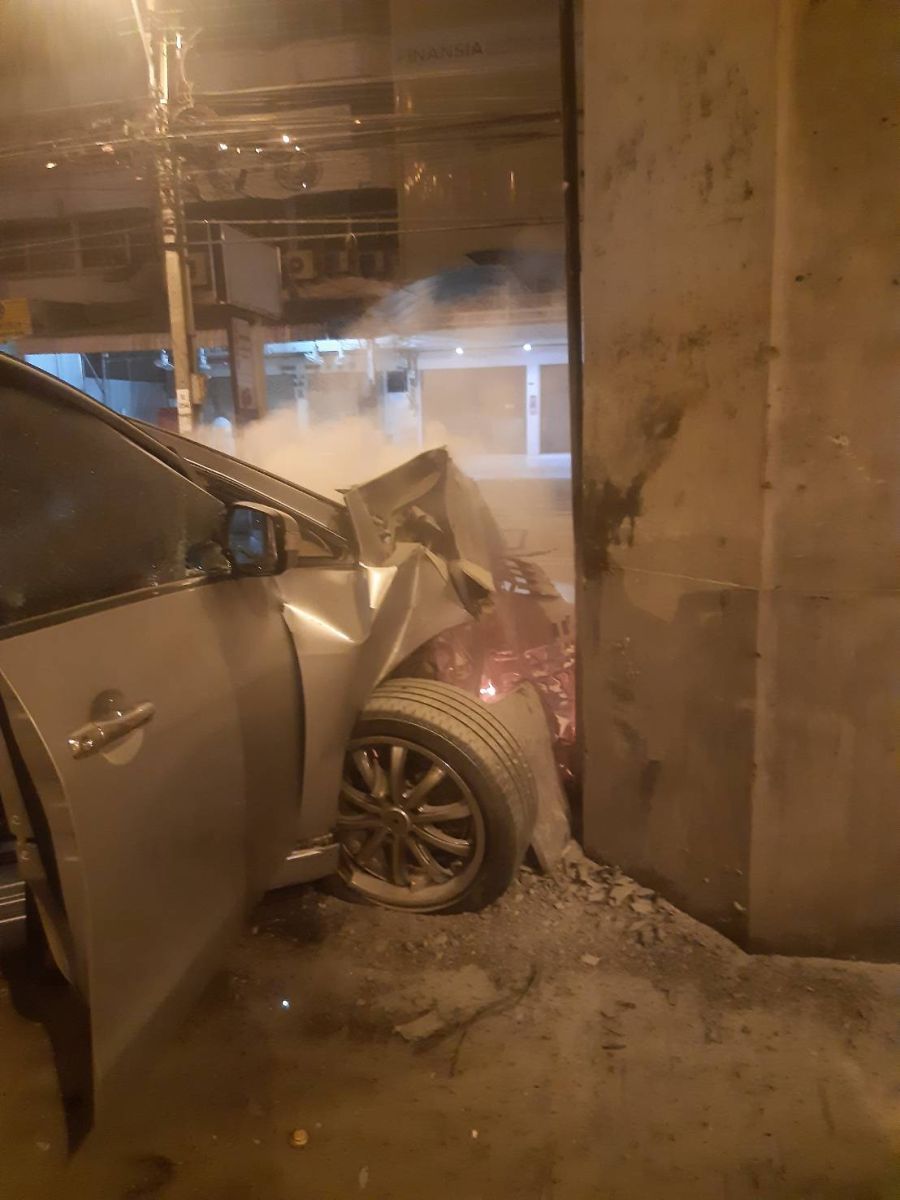 ที่เกิดเหตุ พบรถนั่งส่วนบุคคล มิตซูบิชิ สีเทา ป้ายทะเบียน นทบุรี ลักษณะเสียหลักชนเสาตอม่อสะพานกลับรถ และพบว่ามีแสงเพลิงเกิดขึ้นที่กระโปรงหน้ารถ ทางอาสากู้ภัย ดำเนินการใช้หัวฉีดน้ำดับไฟ จนเพลิงสงบในเวลาต่อมา ตรวจสอบพบว่ามีผู้ได้บาดเจ็บชาย 1 ราย อาสาสมัครกำลังช่วยเหลือและนำส่ง รพ.พระนั่งเกล้า ในส่วนของสาเหตุอยู่ระหว่างการสอบสวนของเจ้าหน้าที่ตำรวจ สภ.รัตนาธิเบศร์