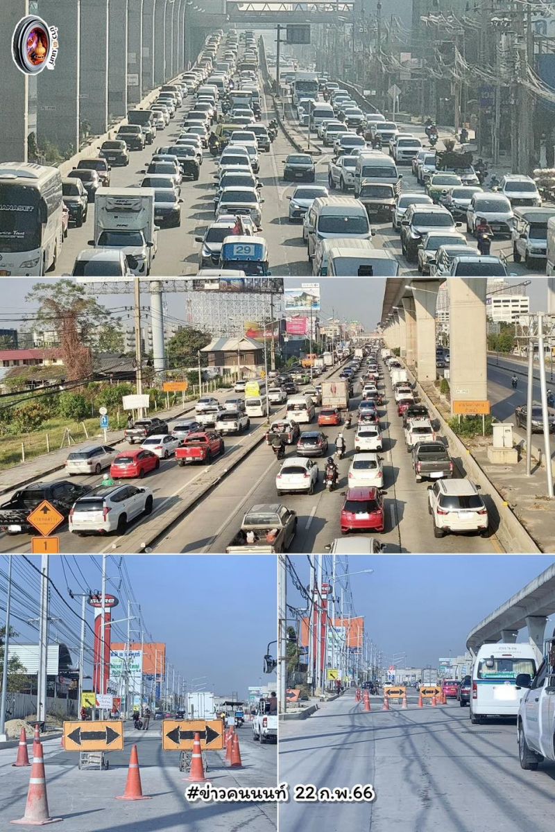 ถนนรัตนาธิเบศร์ ขาออก เลยใต้ MRT สามแยกบางใหญ่ มีงานปรับผิวการจราจร ช่องทางคู่ขนาน เสียไป 2 ช่องทางซ้าย รถติดหนักมาก ท้ายแถวสะสมอยู่ที่แยกบางพลู #รายงานจราจร #รถติด #FM91