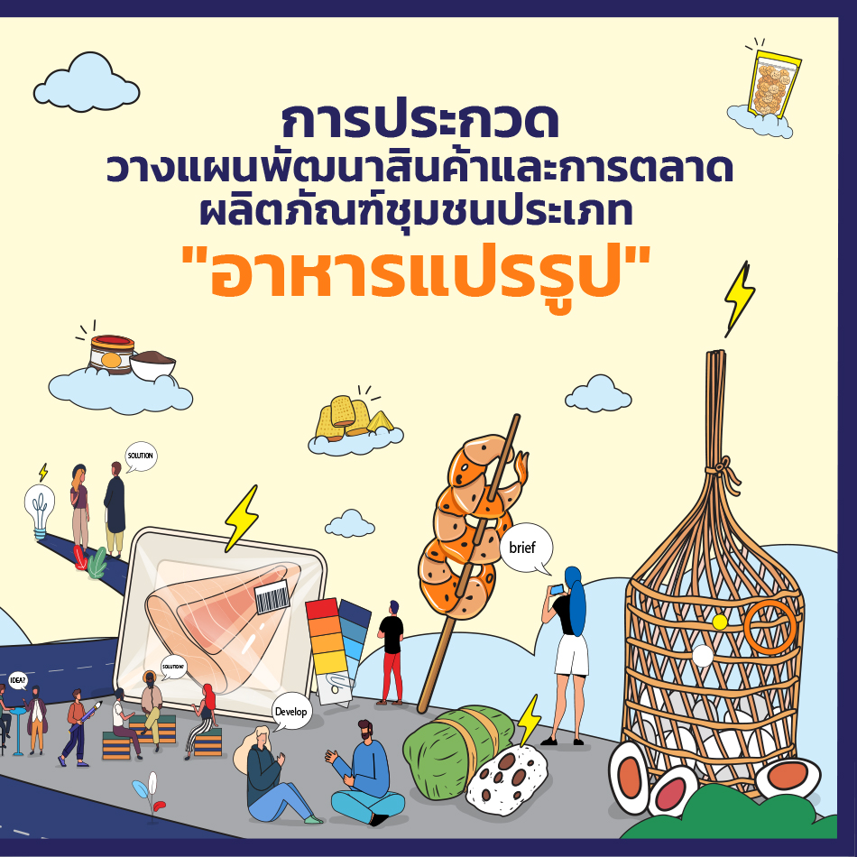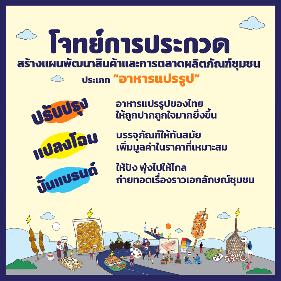 กับโจทย์ในการสร้างแผนพัฒนาสินค้าและการตลาดผลิตภัณฑ์ชุมชน ประเภท “อาหารแปรรูป” ภายใต้แนวคิด “ปรับปรุง แปลงโฉม ปั้นแบรนด์”