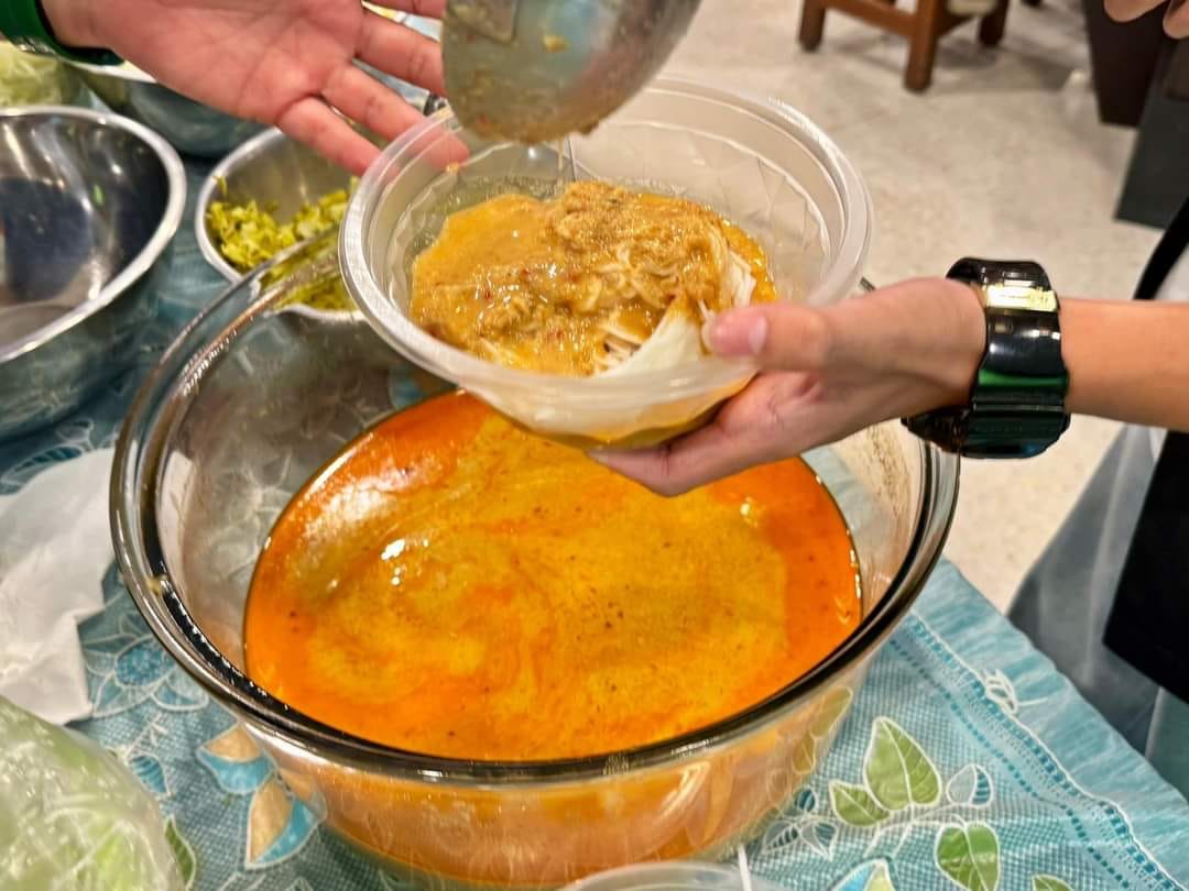 สำหรับเมนูขนมจีนปลาหมอคางดำเสิร์ฟ 100 ที่ ใช้ปลาหมอคางดำประมาณ 10 กิโลกรัม ตัดแต่งควักไส้และนำไปนึ่ง แกะเนื้อ จะได้เนื้อสุกประมาณ 2 กิโลกรัม โขลกหรือปั่นผสมกับเครื่องแกง กะทิ ต้ม ปรุงรสให้กลมกล่อม สำหรับปลาหมอคางดำที่มาจากแหล่งน้ำกร่อยจะไม่มีกลิ่นดิน ส่วนปลาจากแหล่งน้ำจืดอาจมีกลิ่นเฉพาะตัวตามธรรมชาติ อย่างไรก็ตาม เมนูขนมจีนน้ำยา ปรุงรสเข้มข้นด้วยสมุนไพรไทย จึงลดอุปสรรคด้านกลิ่นรสของปลาน้ำจืดได้