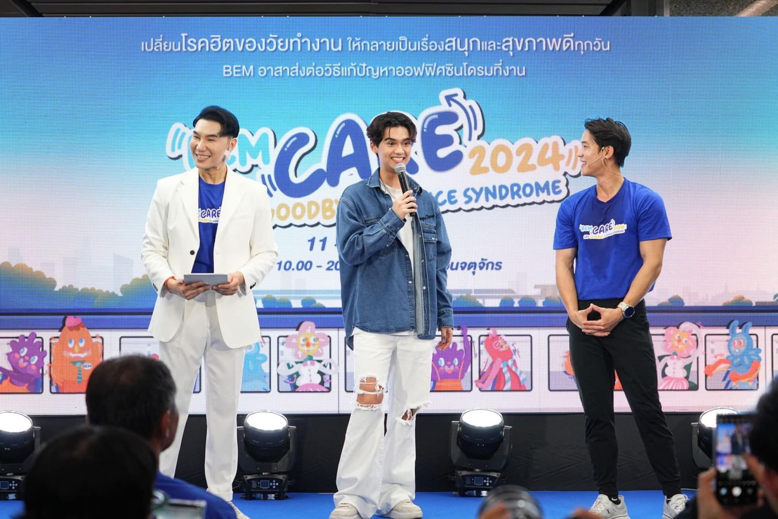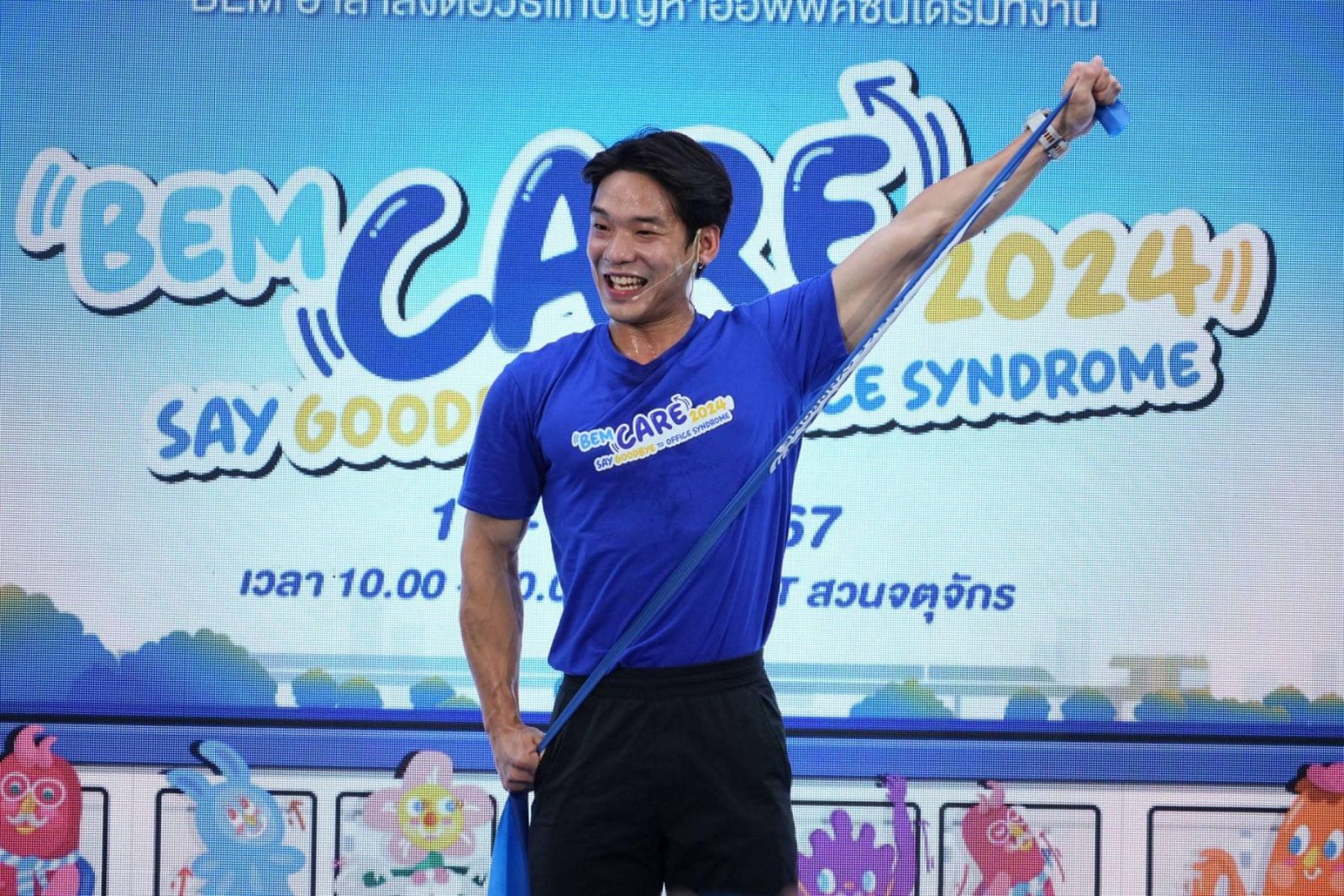 BEM CARE 2024...Say Goodbye to Office Syndrome เป็นความร่วมมือระหว่าง BEM และการรถไฟฟ้าขนส่งมวลชนแห่งประเทศไทย (รฟม.) การทางพิเศษแห่งประเทศไทย (กทพ.) สำนักงานกองทุนสนับสนุนการสร้างเสริมสุขภาพ (สสส.) บริษัท ช.การช่าง จำกัด (มหาชน) และบริษัท แบงคอก เมโทร เน็ทเวิร์ค จำกัด (BMN) ตลอดจนพันธมิตรในหลากหลายธุรกิจ อาทิ โรงพยาบาล คลินิกดูแลสุขภาพ และธุรกิจเพื่อสุขภาพ จัดขึ้นตั้งแต่วันที่ 11-13 กรกฎาคม 2567 เวลา 10.00 - 20.00 น. ณ สถานีรถไฟฟ้า MRT สวนจตุจักร บริเวณชั้นร้านค้าทางออก 2 และทางออก 3 โดยมีกิจกรรมที่น่าสนใจเกี่ยวกับแนวทางป้องกันและบรรเทาปัญหาออฟฟิศซินโดรมมากมาย