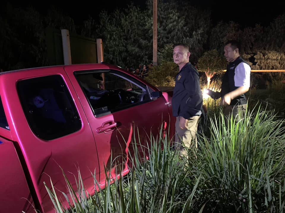 ที่เกิดเหตุ พบรถกระบะ อีซูซุ สีชมพู ป้ายทะเบียน 7826 เพชบุรี ลักษณะจอดอยู่ในพงหญ้าข้างทาง ที่กระจกหน้ารถพบว่าแตกเป็นรูคล้ายถูกยิงด้วยอาวุธปืน ตรวจสอบภายในรถ พบร่างของผู้เสียชีวิต 1 ราย ทราบชื่อต่อมา นายธวัชชัย หรือไผ่ บ้านบ่อ อายุ 23 ปี ลักษณะถูกยิงด้วยอาวุธปืนยังไม่ทราบชนิด มีบาดแผลที่ขมับขวา เบ้าตาขวา และกลางหน้าอก จุดละ 1 แห่ง เบื้องต้นทางเจ้าพนักงานสอบสวนร่วมตรวจสอบ พร้อมหน่วยพิสูจน์หลักฐาน และแพทย์เวรรร่วมชันสูตรพลิกศพเพื่อหาสาเหตุและติดตามผู้ก่อเหตุต่อไป