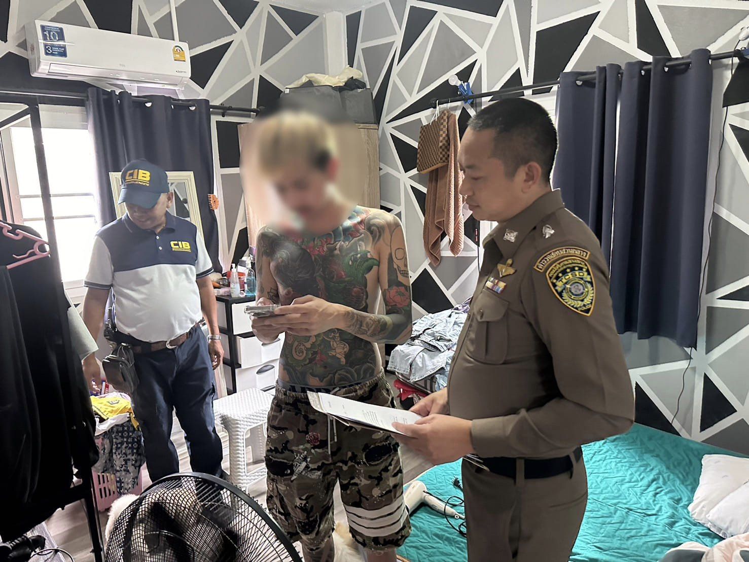 จากนั้นเจ้าหน้าที่ตำรวจจึงได้ทำการสืบสวน รบรวมพยานหลักฐานขอหมายค้น ดำเนินการตรวจค้น และแจ้งข้อกล่าวหากับผู้ที่เกี่ยวข้องกับการกระทำความผิด โดยได้เข้าตรวจค้นจำนวน 3 จุด ในจังหวัด กรุงเทพมหานคร กาญจนบุรี และระยอง เพื่อรวบรวมพยานหลักฐาน ดังนี้