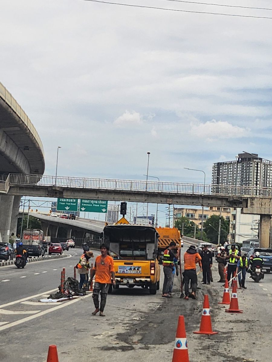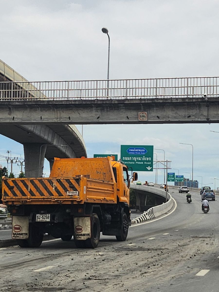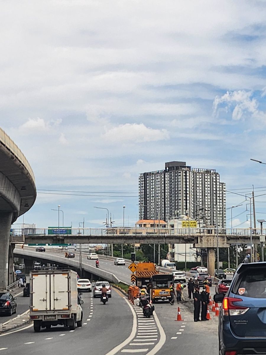 ถนนราชพฤกษ์ ขาออก เลยบีทีเอสวุฒากาศเล็กน้อย ก่อนถึงต่างระดับสวนเลียบ รถบรรทุกทำดินโคลนกองใหญ่หล่น เจ้าหน้าที่กำลังเร่งทำความสะอาด รถผ่านได้แค่ช่องทางขวา ติดขัดมาก ท้ายแถวสะสมใกล้บีทีเอสโพธิ์นิมิตรแล้ว #รายงานจราจร #รถติด #FM91