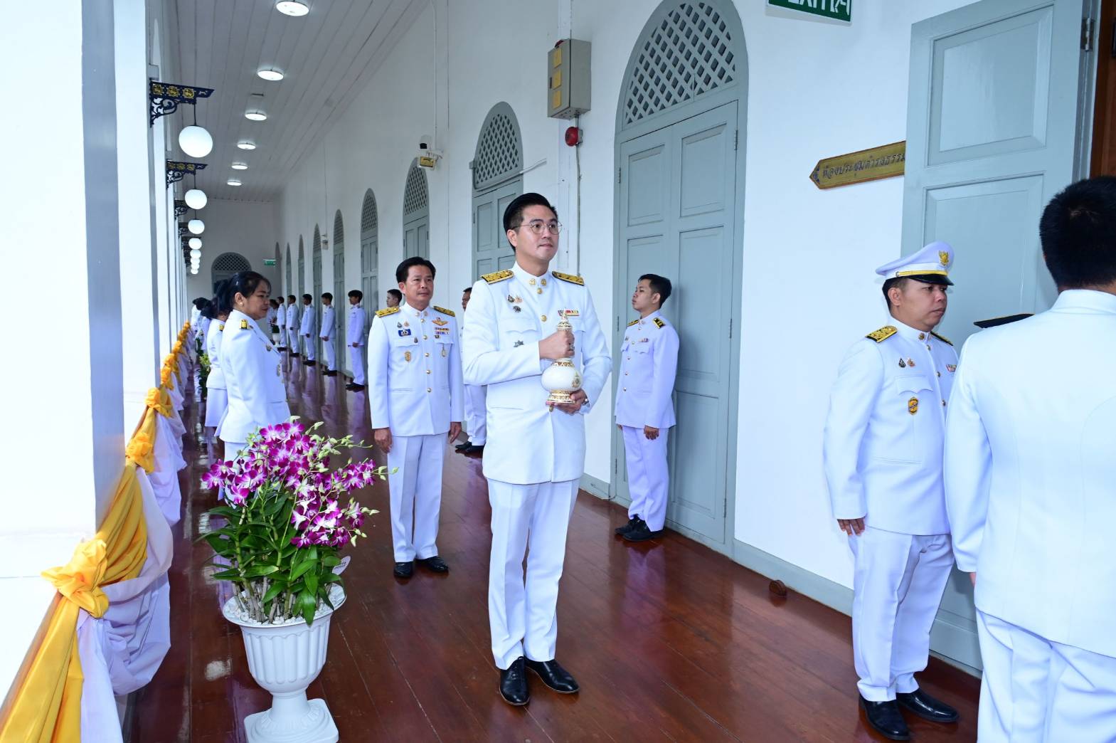 ปลัด มท. นำคณะผู้บริหารและข้าราชการกระทรวงมหาดไทยร่วมพิธีเชิญคนโทน้ำพระพุทธมนต์ศักดิ์สิทธิ์ของทั้ง 76 จังหวัด มาเก็บรักษาที่กระทรวงมหาดไทย เพื่อเตรียมเชิญไปประกอบพิธีเสกน้ำพระพุทธมนต์ศักดิ์สิทธิ์ เนื่องในโอกาสพระราชพิธีมหามงคลเฉลิมพระชนมพรรษา 6 รอบ 28 กรกฎาคม 2567 โดยบรรยากาศเป็นไปด้วยความเรียบร้อยและสมพระเกียรติ
