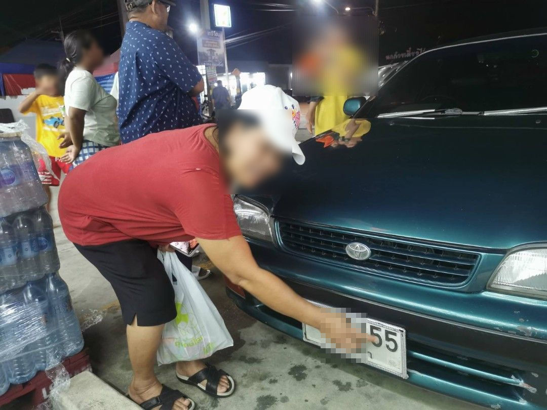 ที่เกิดเหตุ พบผู้เป็นพ่อ อายุ 32 ปี กำลังกระวนกระวายอยู่ที่ประตูรถเก๋ง หมายเลขทะเบียน ระยอง เพราะมีลูกสาว อายุ 1 ขวบ 8 เดือน ติดอยู่ในรถที่ติดเครื่องยนต์และเปิดแอร์ไว้ และพยายามเรียกให้ลูกกดตัวเปิดล็อคประตูรถยนต์ ส่วนเจ้าหน้าที่กู้ภัยก็พยายามงัดประตูรถอีกฝั่งเพื่อช่วยเหลือเด็กออกมาให้เร็ว ขณะเดียวกันป้าแอ๊ดที่ยืนลุ้นกู้ภัย และคุณพ่อที่กำลังพยายามเรียกให้ลูกกดตัวเปิดล็อคประตูก็ก้มกราบที่กระโปรงรถ พร้อมกับเอ่ยขึ้นมาว่า "เจ้าประคุณขอให้เปิดใด้เร็วๆน่าสงสารเด็ก" ก่อนที่จะเอามือลูบที่ ป้ายเลขทะเบียน เพราะตรงกับอายุตนเอง 55 เพื่อที่จะไปลุ้นเลขรางวัลตามระเบียบ ทันใดนั้นผ่านไปประมาณ 20 นาทีปรากฏว่า หนูน้อยก็กดล็อคประตูด้วยตัวเอง สีหน้าของหนูน้อยไม่ตกใจ ท่ามกลางความดีใจและโล่งอกของผู้เป็นพ่อและกู้ภัยที่ช่วยกันลุ้นอย่างระทึก