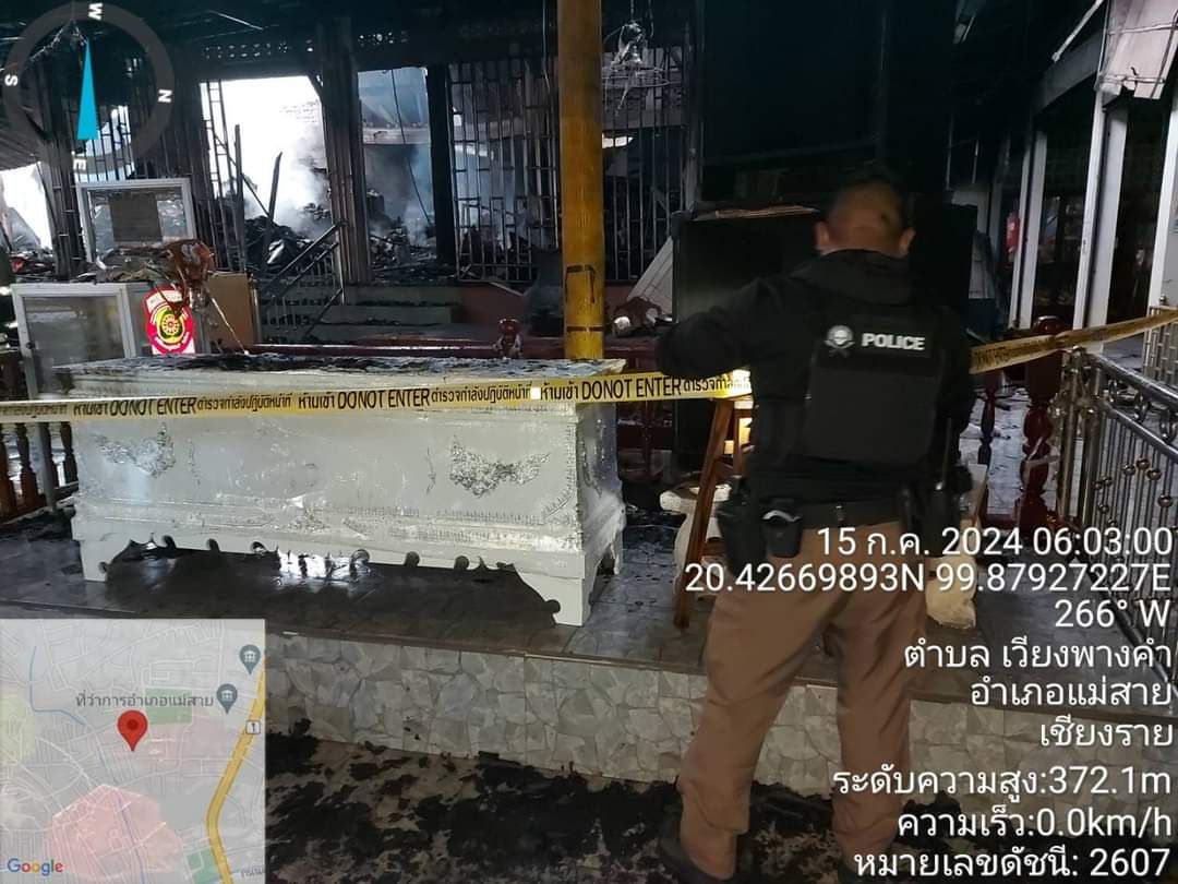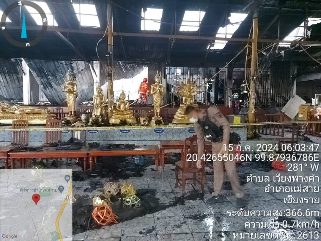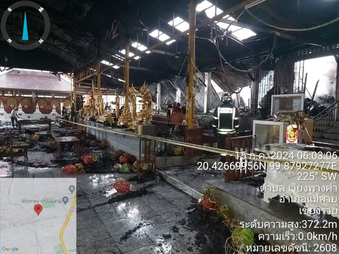 เวลาประมาณ 02.49 น. วันที่ 15 กรกฎาคม 2567 ได้เกิดเหตุเพลิงไหม้ ที่วัดพรหมวิหาร หมู่ 10 ต.เวียงพางคำ อ.แม่สาย จ.เชียงราย