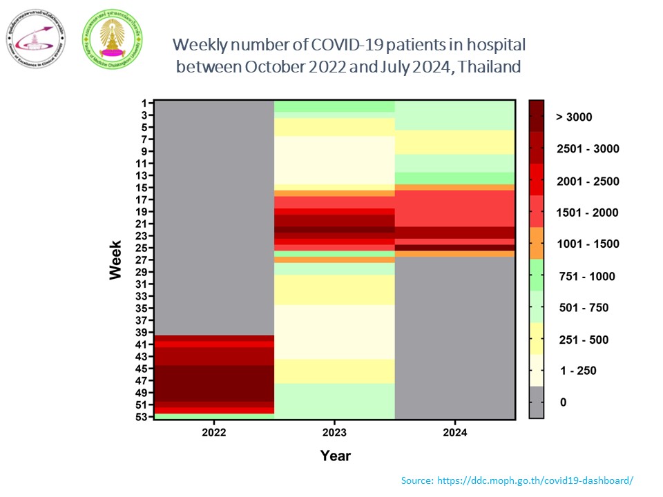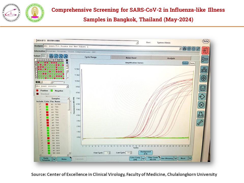จากการตรวจทางห้องปฏิบัติการที่ทำอยู่ ถ้าเอาตัวอย่างผู้ป่วยที่มีอาการคล้ายไข้หวัดใหญ่ จะเห็นได้ชัดว่ายอดการติดเชื้อโควิด จะมีเป็นจำนวนมาก ถึง ร้อยละ 30 เมื่อเดือนพฤษภาคม และดูเหมือนว่าจะลดลงเล็กน้อยในเดือนมิถุนายน และขณะนี้ยังคงที่อยู่ ดังแสดงในรูป