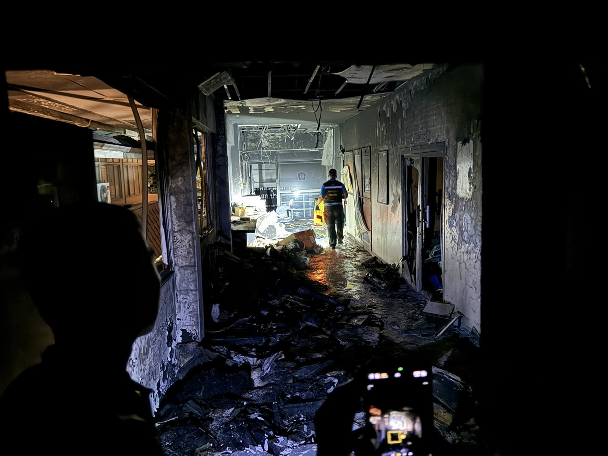 พฐ. ลงพื้นที่ เร่งตรวจสอบสาเเหตุ ไฟไหม้ห้องเก็บเอกสารอาคารหลังเก่า สภ.ปากเกร็ด จ.นนทบุรี